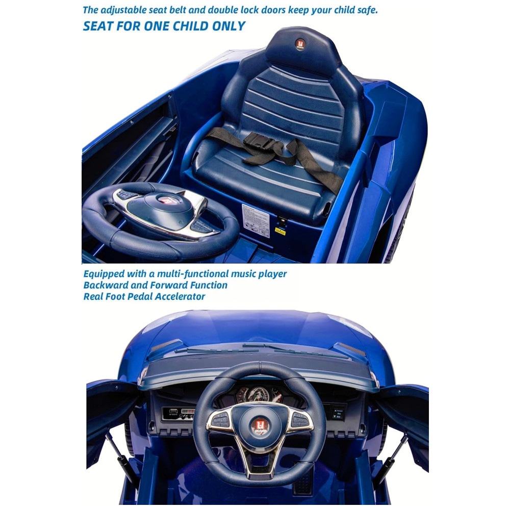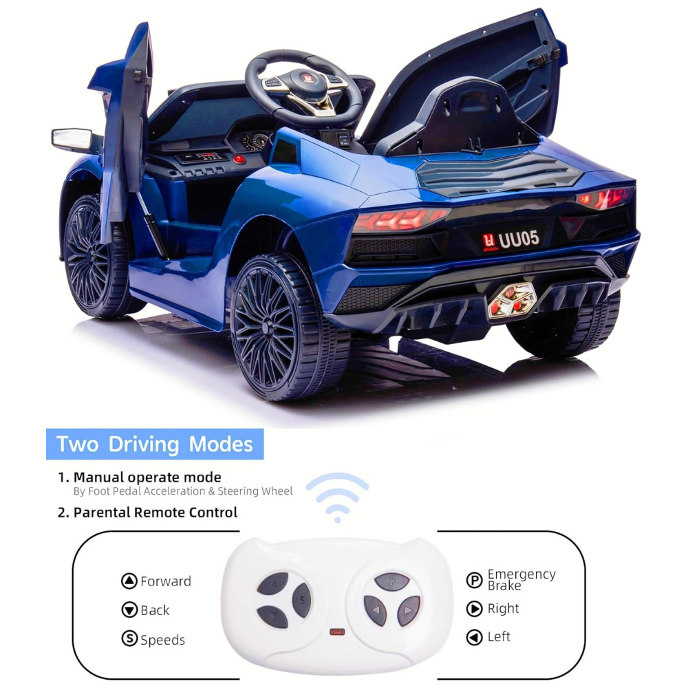 Carro elétrico infantil com design gelado e portas que abrem, permitindo que as crianças entrem e saiam com mais elegância. Possui luzes LED reais para trazer uma experiência de direção mais realista. Oferece dois modos de condução: pedal e volante para que a criança possa dirigir de forma independente, e controle remoto para brincadeiras interativas supervisionadas pelos pais. Feito com material plástico não tóxico premium e equipado com cinto de segurança, é seguro e durável. O carro motorizado infantil é em conformidade com ASTM, com capacidade máxima de peso de 34,92 quilos e ideal para crianças de 3 a 8 anos. Possui rodas resistentes ao desgaste para tração em quase todos os terrenos, como pista de borracha e estrada de cimento. Seja dentro ou fora de casa, seus filhos podem se divertir onde quiserem.