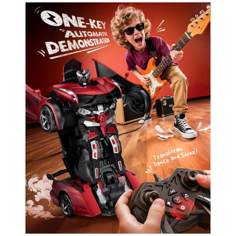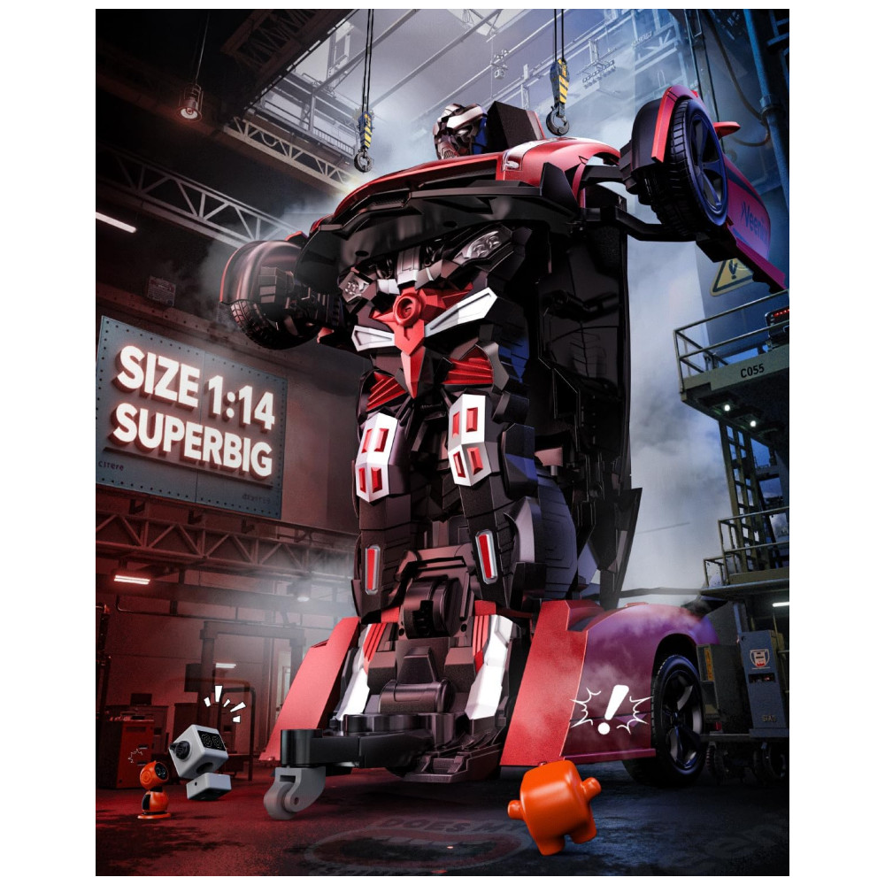 Veículo Robô Controlado por Controle Remoto Escala 1:14 2 em 1 com Luz e Som Sensor de Movimento Transformação Automática -Veeniix