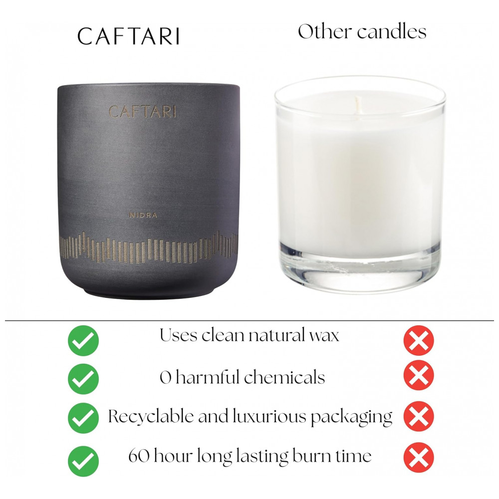 EXPERIÊNCIA AROMÁTICA ELEVADA Convide ao descanso com a presença calmante da vela Nidra da Caftari. Inspirada na tranquilidade do crepúsculo, esta fragrância luxuosa estabelece um tom sereno e pronto para o sono em qualquer ambiente. A combinação única de jasmim, tuberosa e neroli oferece uma aroma suave e envolvente que acalma os sentidos e prepara a mente para um descanso profundo. QUEIMA LIMPA DE LONGA DURAÇÃO Criada com maestria a partir de uma mistura premium de cera de coco e soja, esta vela de 298g proporciona até 60 horas de queima. Projetada para uma queima uniforme, oferece fragrância consistente ao longo de todo uso, sendo um companheiro perfeito para criar ambiente todos os dias ou em ocasiões especiais. PERFIL DE AROMA FLORAL BRANCO Pertencente à família olfativa Floral Branca, Nidra abre com uma nota suave de jasmim, floresce em um coração cremoso de tuberosa e se estabiliza em uma base fundamentada de neroli. Esta mistura dos sonhos oferece uma composição floral tranquila e expressiva, ideal para quem deseja uma fragrância calmante que sinaliza suavemente descanso e renovação. DESIGN MODERNO, ARTESANATO DESPEJADO À MÃO Cada vela Caftari é despejada à mão em um recipiente cerâmico minimalista projetado para elevar qualquer ambiente. Sua forma elegante e apresentação cuidadosa a tornam uma peça de decoração versátil que adiciona estilo e sofisticação ao seu espaço. UM PRESENTE REFINADO PARA QUALQUER OCASIÃO Com sua fragrância elegante e design limpo e contemporâneo, a vela Nidra da Caftari é uma escolha de presente excepcional. Seja para aniversário, inauguração de casa ou celebração, ela oferece uma apresentação polida e cuidadosa que deixa uma impressão duradoura.