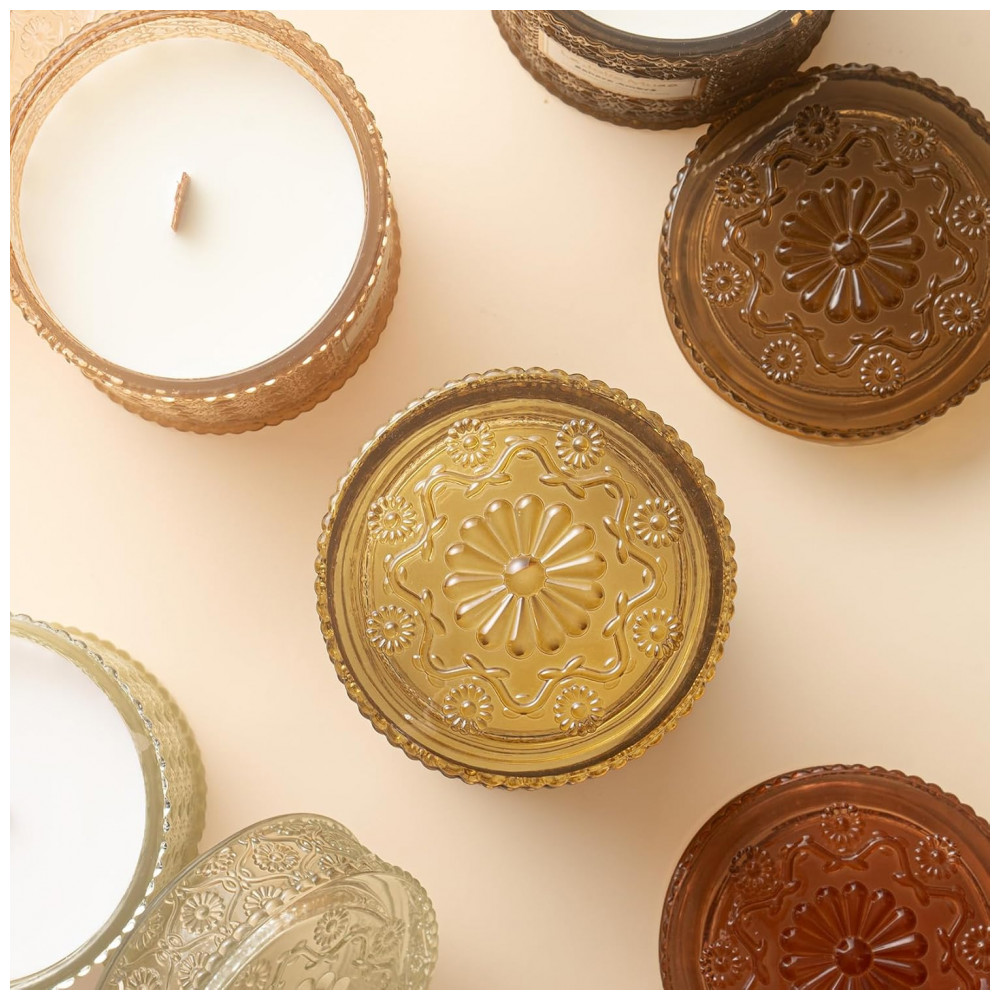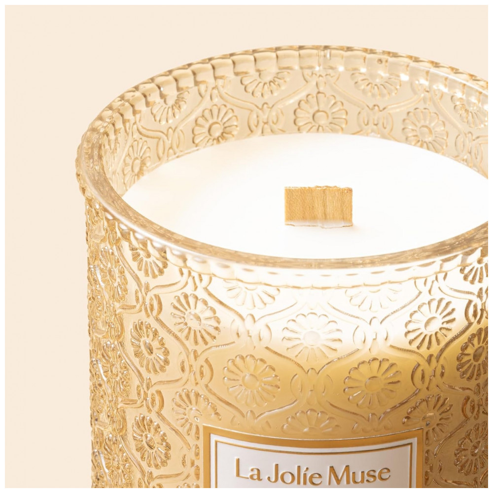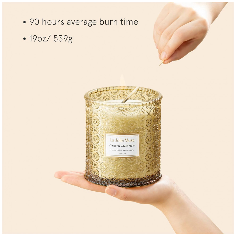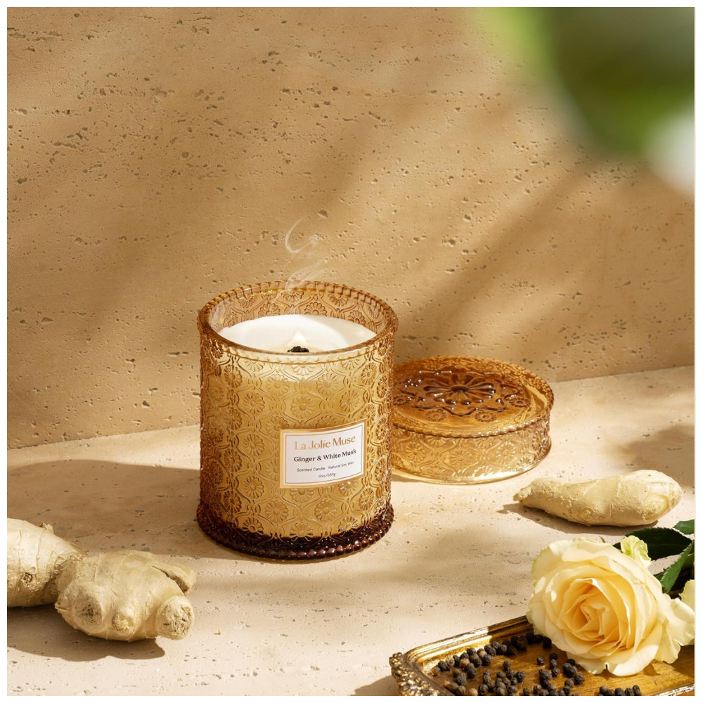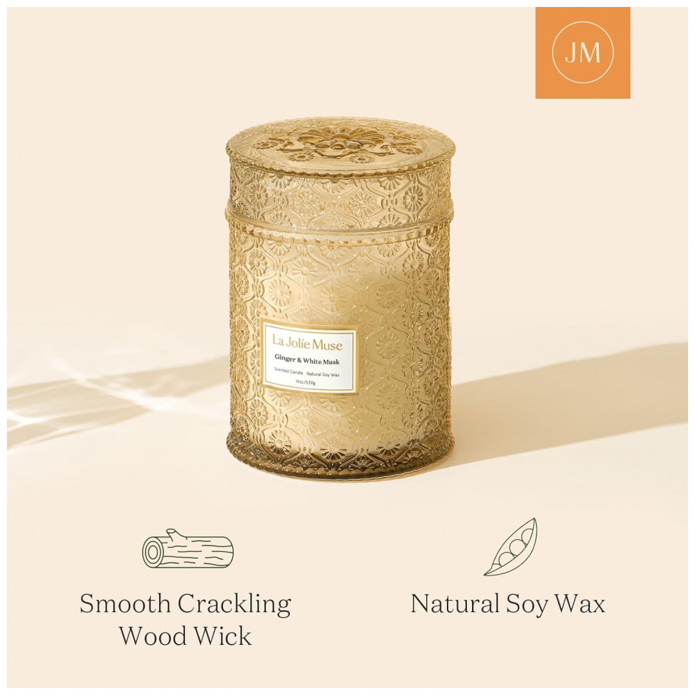 A coleção Maelyn oferece velas de luxo inspiradas em jardins antigos e propriedades europeias. Cada frasco, decorado com motivos de margarida, combina o charme da decoração elegante com o aconchego nostálgico e a atmosfera sazonal. A combinação de Gengibre e Almíscar Branco, enriquecida com capim-limão e um toque picante de pimenta preta, se desdobra em um buquê exuberante. Esta fragrância evolui para um abraço acolhedor de ambrox, cedro fresco e almíscar branco, perfeita para a transição para o outono, momentos de relaxamento ou para criar um ambiente leve e inspirador. Feita com ingredientes limpos, a vela é produzida com cera de soja vegana e pavio de madeira de cerejeira para uma queima limpa e uniforme, com mínima fuligem. Livre de formaldeído, sulfatos, ftalatos, pesticidas e parabenos. Com um frasco de vidro luxuoso de 19 oz, oferece até 90 horas de queima limpa, ideal para relaxamento, noites aconchegantes, rotinas de autocuidado ou para criar um lar acolhedor. Embalagem pronta para presente, elegantemente caixada com fita para presentear com facilidade. Um presente sazonal atencioso para anfitriões, família, amigos ou para si, ideal para quem valoriza a vida intencional.