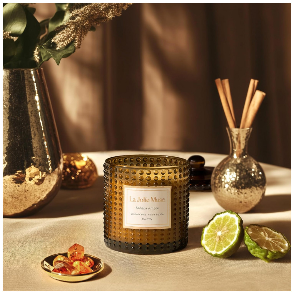 Vela LA JOLIE MUSE Fall Candle Sahara Amber – 10 oz de Cera de Soja Natural – Fragrância de Outono – Limpeza e Conforto para Noites Aconchegantes – De