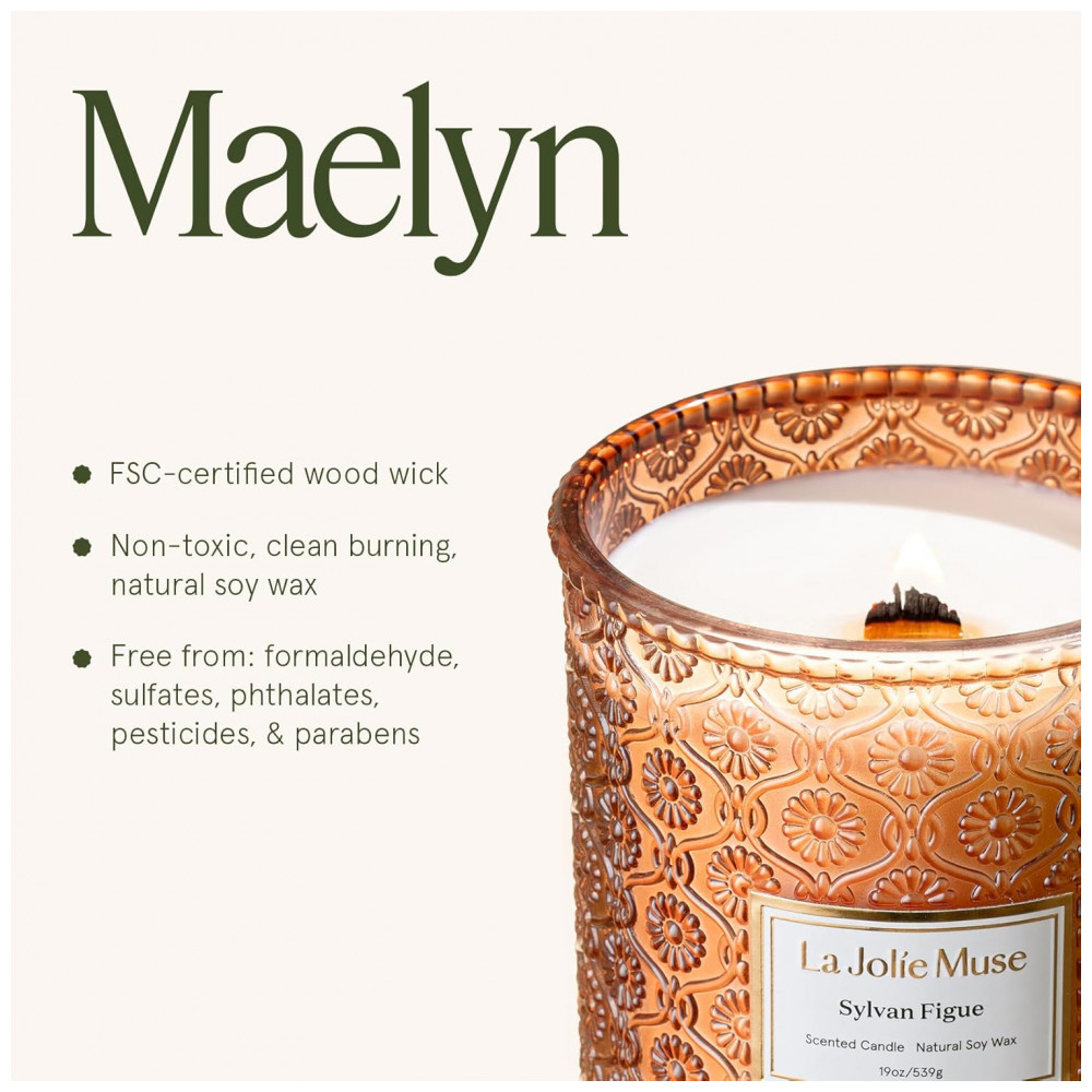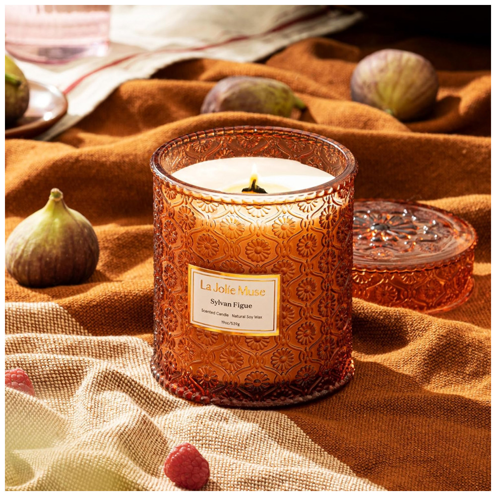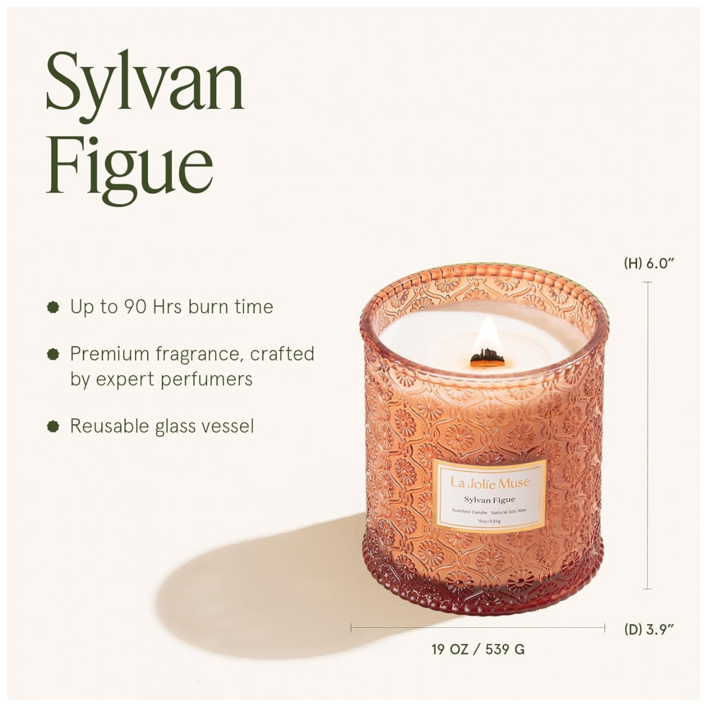 Vela LA JOLIE MUSE Sylvan Figue 19 oz com Pavio de Madeira – Cera de Soja Natural – 90 Horas de Queima Limpa – Presente de Luxo para Anfitriões