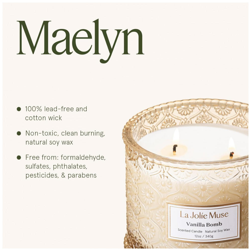A coleção Maelyn traz velas de luxo inspiradas em jardins antigos e propriedades europeias. Cada frasco, com motivos de margaridas em relevo, combina apelo de decoração elegante com calor acolhedor e atmosfera sazonal. A fragrância Vanilla Bomb, uma mistura brilhante de bergamota, zest de limão, coco, frésia e gerânio, encontra a baunilha cremosa para um aroma que equilibra frescor cítrico com uma sensualidade acolhedora – perfeito para noites aconchegantes de outono e evocando um paraíso tropical ao entardecer. Feita com ingredientes limpos, como cera de soja vegana e pavios duplos de algodão, para uma queima limpa e uniforme, com mínimo de fuligem. Livre de formaldeído, sulfatos, ftalatos, pesticidas e parabenos. Frasco reutilizável de vidro de luxo de 12 oz, com até 60 horas de queima limpa – perfeito para relaxamento, noites aconchegantes, rotinas de autocuidado ou criar um lar acolhedor. Embalagem pronta para presente, em materiais recicláveis, com um recipiente de vidro reutilizável para elevar sua casa e o planeta. Um presente aconchegante e reconfortante para amigos, família ou para si mesmo, ideal para inaugurações, aniversários, agradecimentos ou presentes de anfitrião.