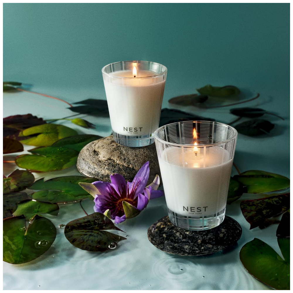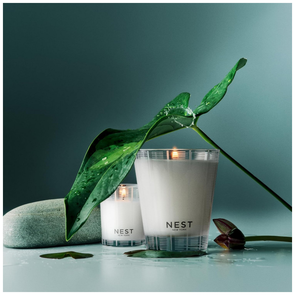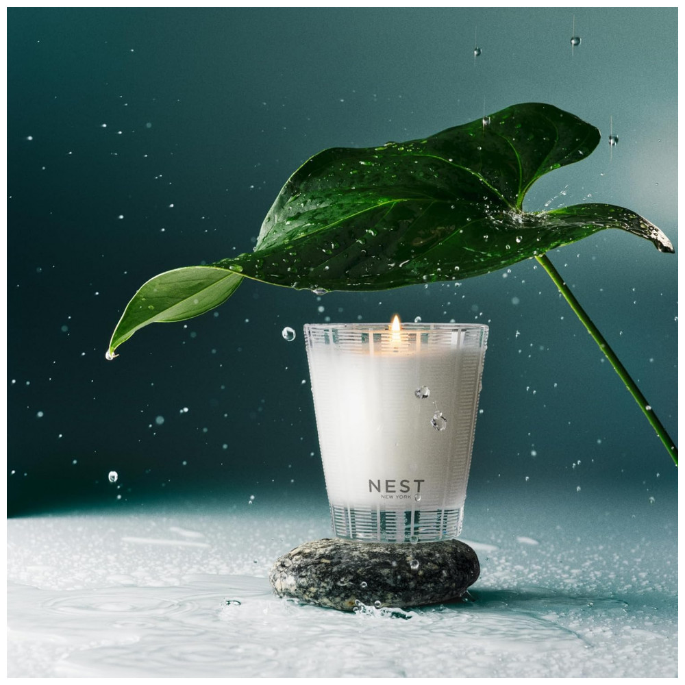 Desfrute de luxo e sofisticação com a Vela de Vidro NEST, projetada para queimar de forma limpa e perfumar sua casa de maneira excepcional. Esta vela eleva a rotina diária e o entretenimento. Abrigada em um recipiente de vidro com elegantes listras fosqueadas, que complementam qualquer decoração. As folhas de figo úmidas envoltas em um véu aquático de lírios d’água evocam a sensação purificadora de uma floresta verde exuberante em uma tempestade. Com notas de madeiras terrosas e pedras úmidas e refrescantes, este aroma encapsula a essência transformadora da chuva. Queima Limpa: Esta vela requintadamente perfumada é feita com cera premium, que queima limpa e uniformemente por até 60 horas. Livre de Crueldade: Esta vela perfumada decorativa é vegana e fabricada nos EUA sem testes em animais. Perfume o Seu Mundo: As coleções de fragrâncias para casa, perfume e cuidados com o corpo da NEST New York transformam o cotidiano ao misturar artisticamente notas do familiar, do exótico e do inesperado para uma experiência de fragrância sem igual.