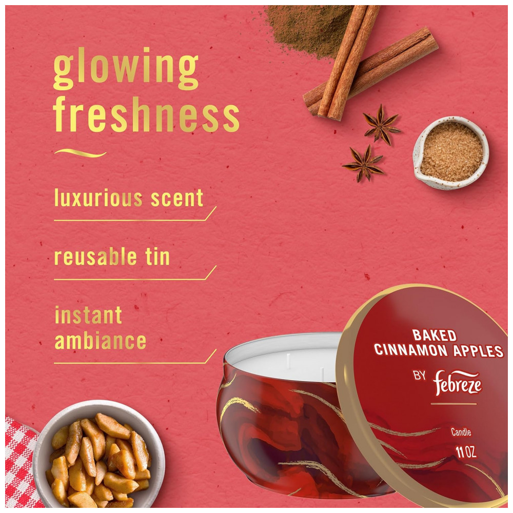 Com o delicioso e aromático aroma da Vela Febreze de Maçãs Assadas com Canela, você pode encantar os sentidos com a bondade da canela e maçã onde e quando quiser. Conquiste sua casa com os aromas de maçãs crocantes e outono com este aroma de férias que refresca e combate odores. Coloque em seus lugares favoritos como quartos, salas de estar, banheiros ou cantos aconchegantes. Adicione uma fragrância fresca por toda a casa, onde quer que a vontade te leve. Agradável Aroma Adiciona uma fragrância agradável a qualquer cômodo sem ser avassalador. Combate odores persistentes no ar com esta encantadora vela perfumada.