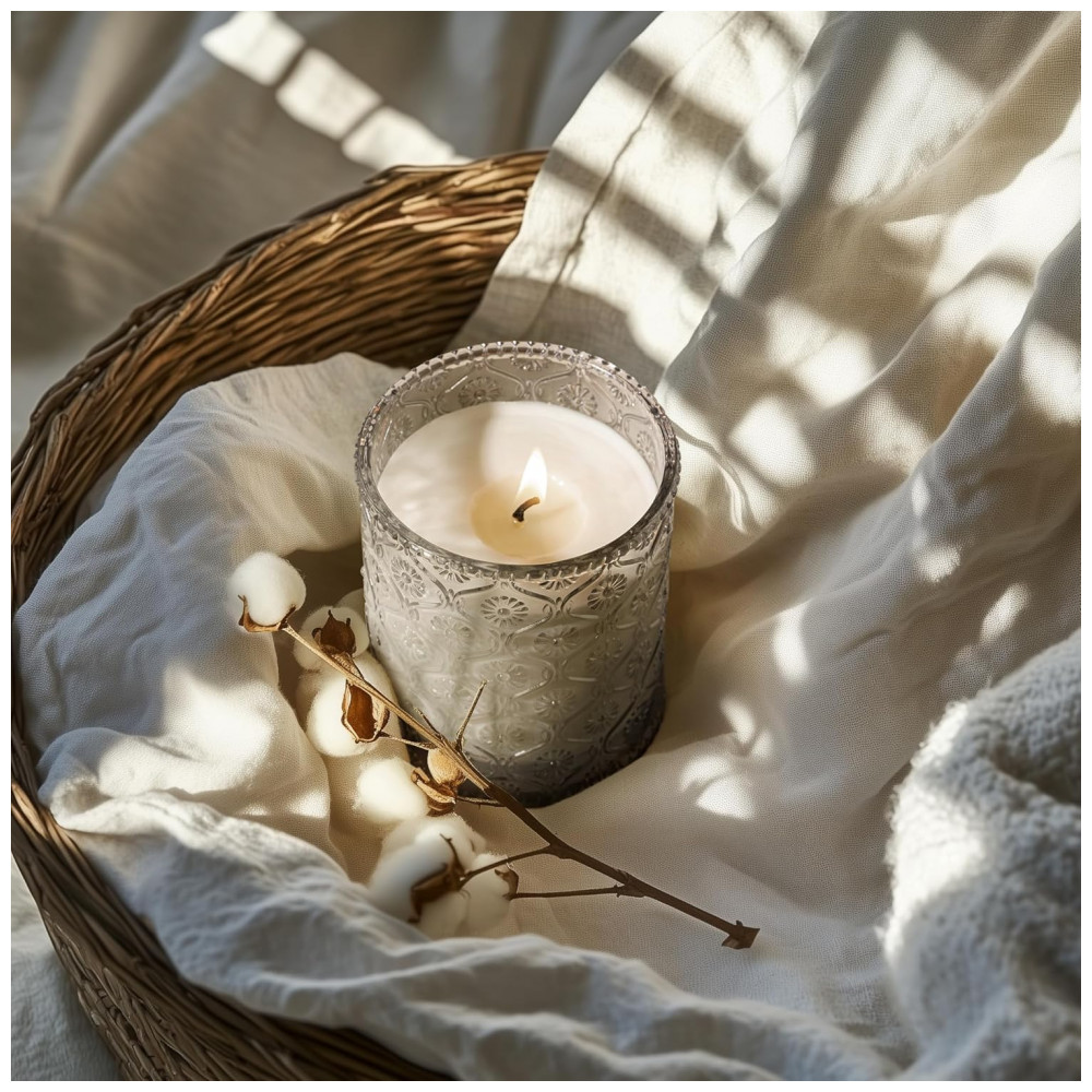 LINHO E ALGODÃO OASIS: Fresco e reconfortante, esta vela evoca aquelas manhãs pacíficas em que você acorda em lençóis de linho recém-lavados e secados ao sol. Uma bela vela que incorpora notas relaxantes de jasmim branco, gerânio, cedro e musk para criar um suave calor solar na pele. VELA DECORATIVA EM VIDRO: Esta vela perfumada fresca é vertida em um luxuoso vidro espesso com padrões de margaridas gravados, tornando-a uma peça decorativa marcante. Após queimar totalmente, o vidro pode ser reutilizado como um belo vaso de flores, porta-pincéis, pote de armazenamento, entre outros. EMBALAGEM ARTÍSTICA: A vela é embalada em nossa caixa com design exclusivo e detalhes em relevo dourado, tornando-a um presente perfeito para diversas ocasiões como Dia dos Namorados ou aniversários. DIFUSÃO DE FRAGRÂNCIA EXCELENTE: Ao acender a vela, a fragrância se difunde rapidamente, preenchendo instantaneamente o ambiente com um aroma revigorante. Esta coleção de velas apresenta uma variedade de aromas convidativos para você escolher. TAMANHO E TEMPO DE QUEIMA: 170g. A cera natural e pavios de algodão sem chumbo garantem que esta vela de soja queime limpa e uniformemente, proporcionando 40 horas de queima aromática livre de crueldade e conservantes.