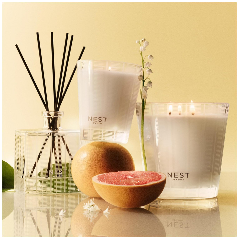 A Vela de Vidro de Luxo foi projetada para queimar de forma limpa e perfumar sua casa com um aroma excepcional, elevando o dia a dia e os momentos de entretenimento. Abrigada em um recipiente de vidro com listras elegantes e fosco, combina com qualquer decoração. A fragrância de Frutas Cítricas Frescas da toranja rosa se une a notas verdes aquáticas, lírio do vale e flor de coentro, criando um aroma sofisticado e revigorante, que instantaneamente estimula os sentidos. Esta vela exquisitamente perfumada é feita com cera premium exclusiva, que queima de forma limpa e uniforme por 75 a 100 horas. Além disso, é cruelty-free, vegana e fabricada nos EUA, sem testes em animais. Aromatize o seu mundo com as coleções de casa, perfume e cuidados com o corpo da NEST New York, que transformam o dia a dia misturando artisticamente notas familiares, exóticas e inesperadas para uma experiência de fragrância sem igual.