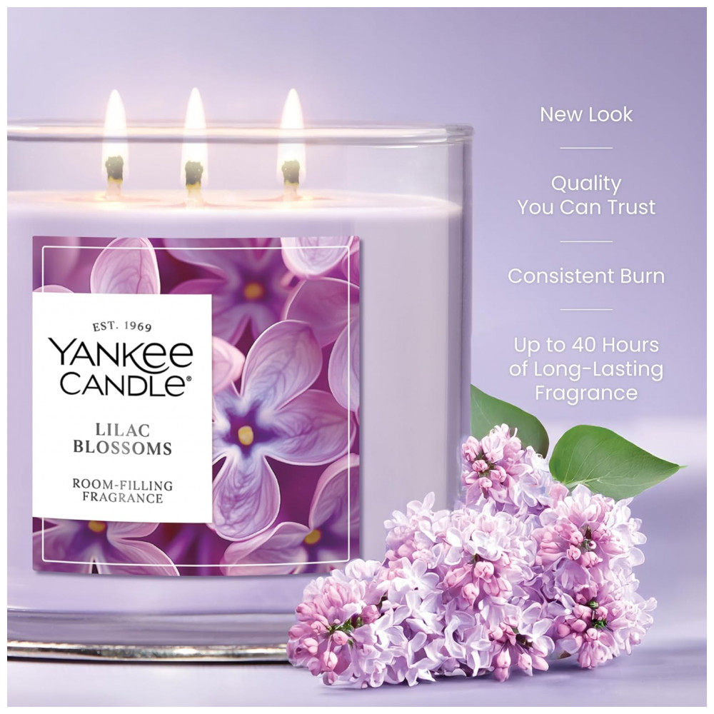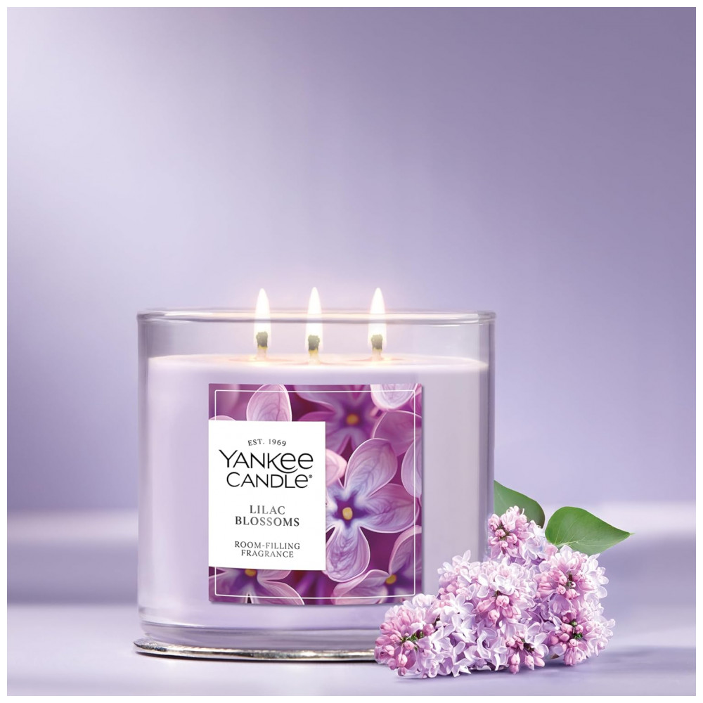 Nossas Velas 3 Pavios são feitas com uma mistura premium de cera vegetal e três pavios de fibras naturais para uma dispersão aprimorada, desempenho de fragrância ideal e ambiente definitivo. Com 410 gramas, são o tamanho perfeito para presentear e ainda proporcionam até 40 horas de uma fragrância envolvente que preenche o ambiente. Lilac Blossoms. O aroma intoxicante e sedutor das flores de lilás recém-abertas incorpora a essência da primavera. Este buquê fiel à vida inclui notas de verdes orvalhados, bergamota e musgo para completar a fragrância. Feita com uma mistura premium de cera vegetal e três pavios de fibras naturais para um desempenho de fragrância ideal. Fragrância consistente e duradoura do início ao fim da queima. Vela de longa duração com até 40 horas de fragrância envolvente. Tampa decorativa de metal protege a cera do acúmulo de poeira entre as queimas. Qualidade em que você pode confiar. Feita nos EUA com materiais de origem global.