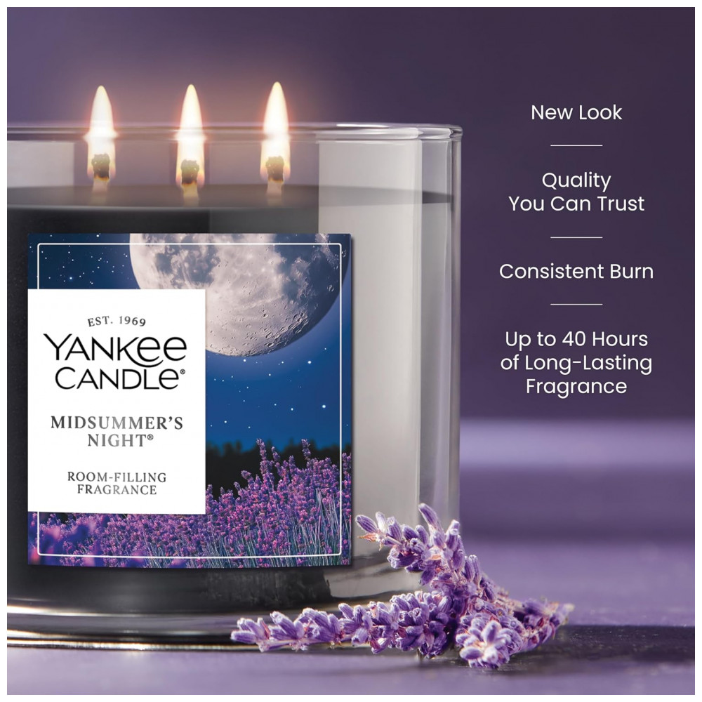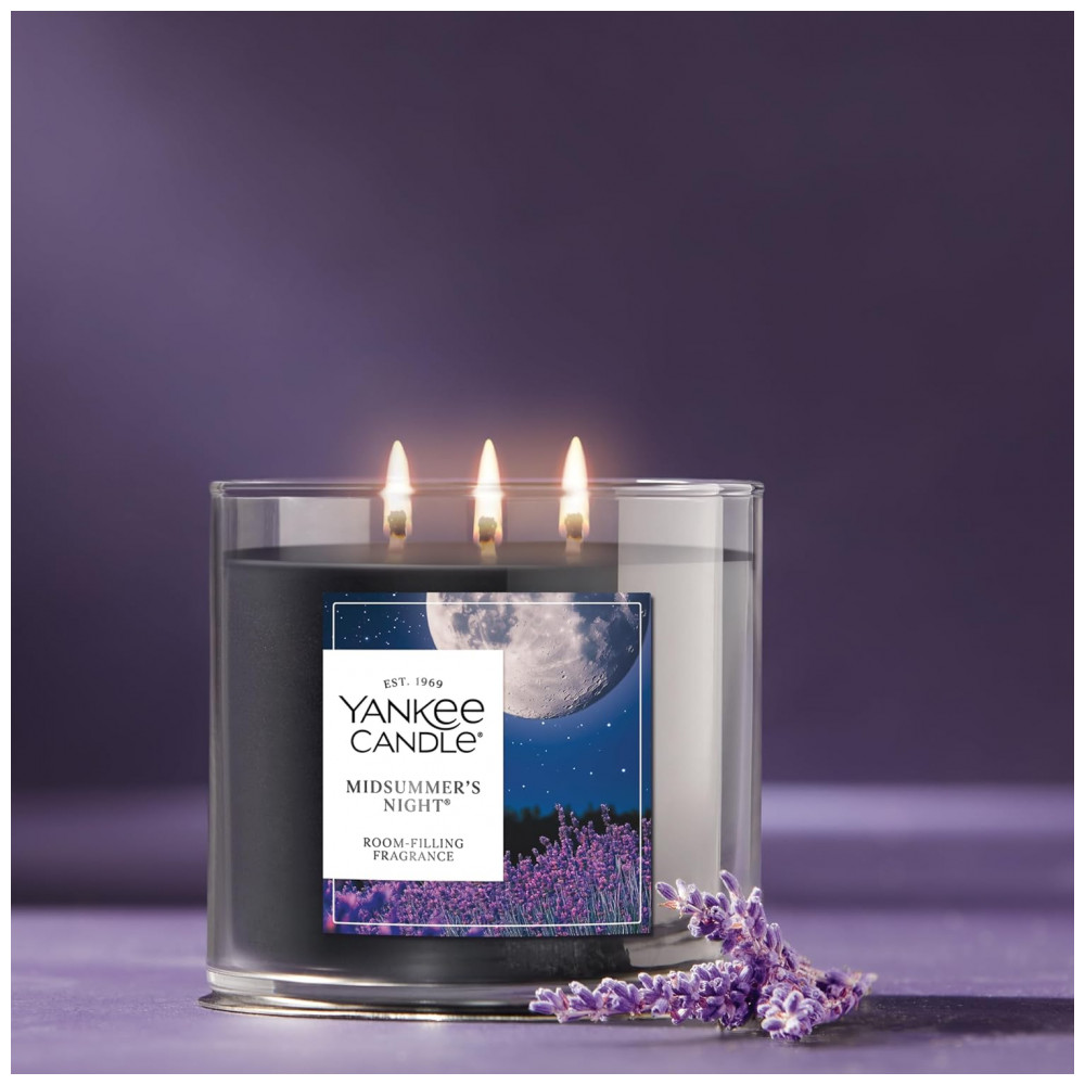 Nossas Velas de 3 Pavios são feitas com uma mistura premium de cera vegetal e três pavios de fibra natural para uma distribuição aprimorada, desempenho de fragrância ideal e ambiente definitivamente acolhedor. Com 411 gramas, elas são do tamanho perfeito para presentear e ainda fornecem até 40 horas de fragrância envolvente. Midsummers Night, intoxicante e sedutora, pode inspirar uma noite romântica de observação das estrelas em uma noite de verão fresca. Notas amadeiradas se misturam com aromas de sálvia e cedro para formar uma colônia terrosa e herbácea. Feita com uma mistura premium de cera vegetal e três pavios de fibra natural para desempenho ideal de fragrância. Fragrância consistente e duradoura desde a primeira até a última queima. Vela de longa duração com até 40 horas de fragrância envolvente. Tampa metálica decorativa protege a cera do acúmulo de poeira e detritos entre as queimas. Qualidade em que você pode confiar. Fabricada nos EUA com materiais de origem global.
