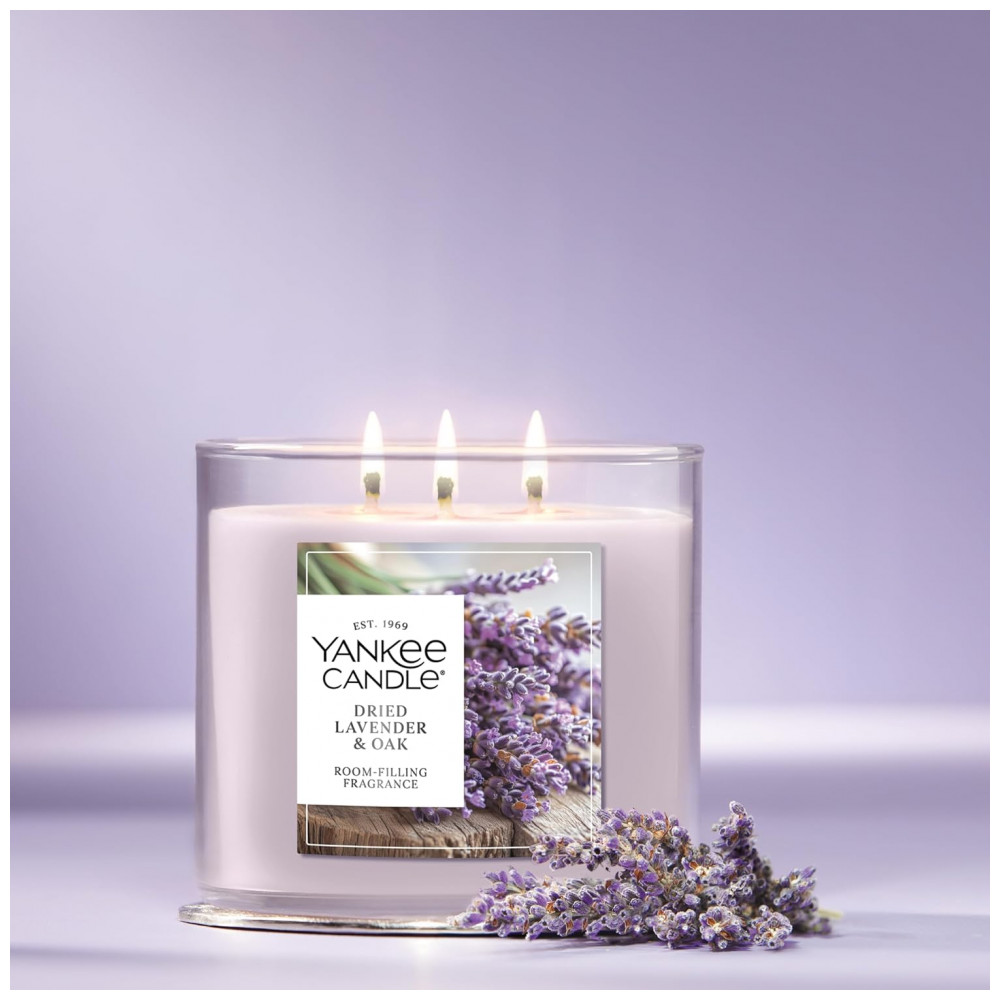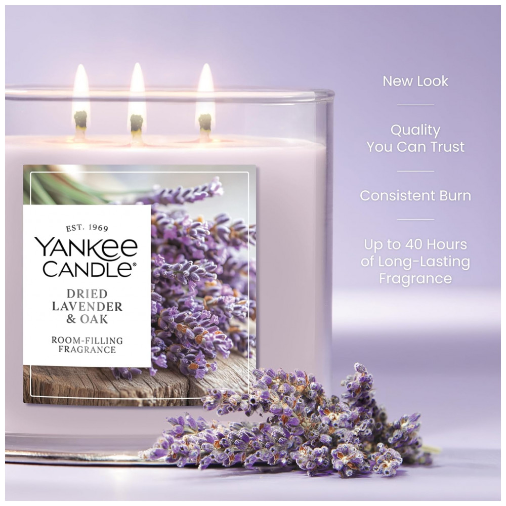 Nossas Velas de 3 Pavios são feitas com uma mistura premium de cera vegetal e três pavios de fibra natural para uma dispersão aprimorada, desempenho de fragrância ideal e ambiente definitivo. Com 411g, são o tamanho perfeito para presentear e ainda proporcionam até 40 horas de fragrância que preenche o ambiente. Lavanda Seca e Carvalho Em uma feira de agricultores ao ar livre, os aromas de buquês de lavanda amarrados à mão se combinam com notas amadeiradas e especiarias. Enriquecendo a cena estão as notas de topo de pimenta-do-reino e uma base de cedro e baunilha. Feita com uma mistura premium de cera vegetal e três pavios de fibra natural para desempenho de fragrância ideal Fragrância consistente e duradoura do primeiro ao último pavio Vela de longa duração com até 40 horas de fragrância que preenche o ambiente Tampa metálica decorativa protege a cera do acúmulo de poeira entre as queimas Qualidade em que você pode confiar Fabricada nos EUA com materiais de origem global