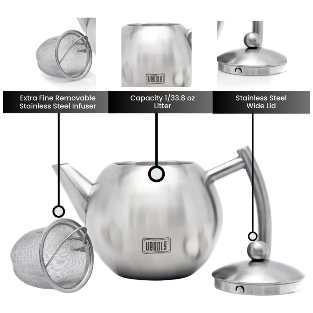 Qualidade premium este bule de chá luxuoso com infusor é feito de materiais de alta qualidade, aço inoxidável com acabamento acetinado que é durável e resistente ao calor