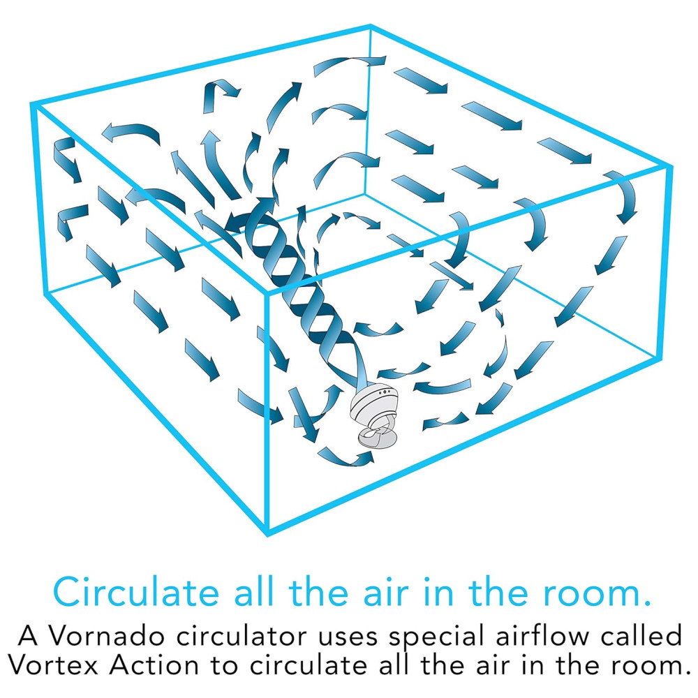 Apresentando o Vornado 560 Circulador de Ar para Todo o Ambiente, um ventilador médio de chão projetado para oferecer um resfriamento potente e eficiente em qualquer cômodo. Utilizando a exclusiva tecnologia de circulação de ar Vortex da Vornado, ele move o ar de forma eficaz por todo o ambiente, garantindo frescor constante, independentemente de onde você esteja na sala.