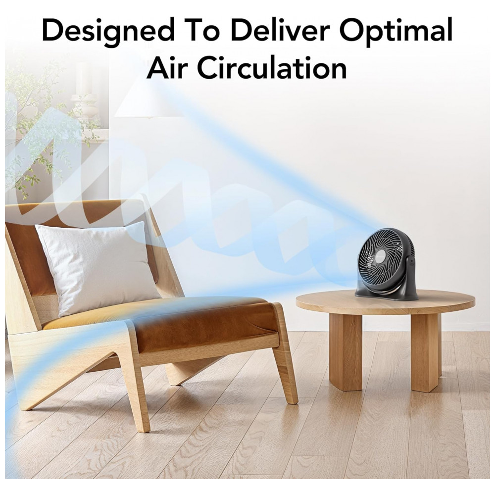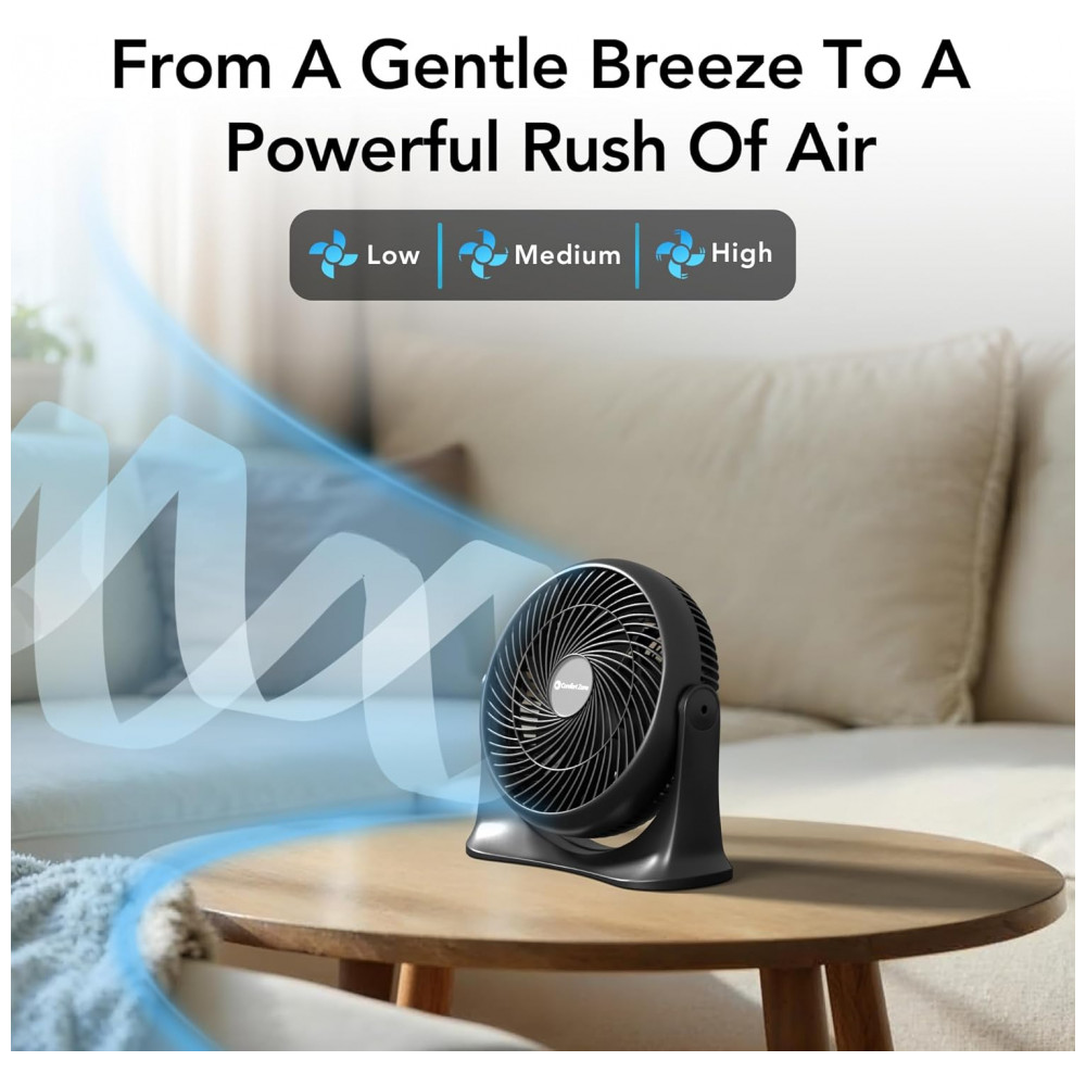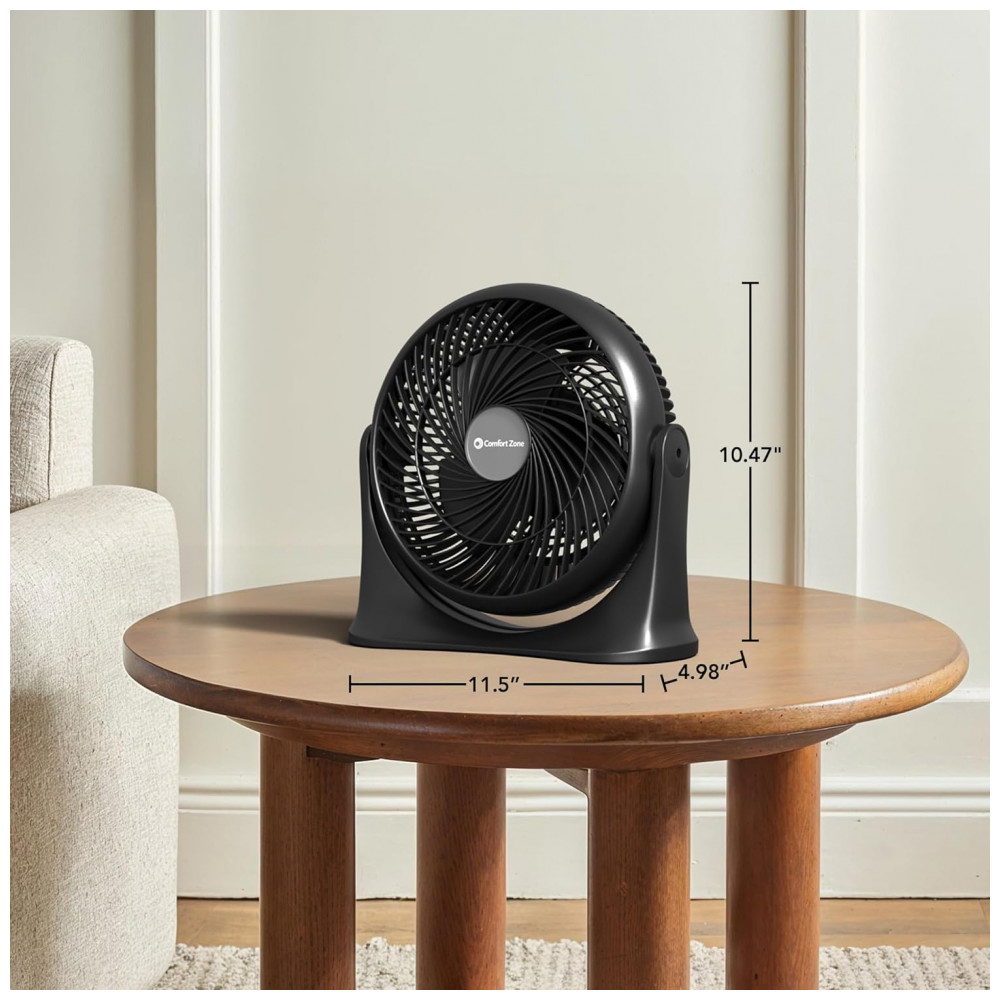 Ventilador Circulador de Mesa Comfort Zone Preto 28 cm Alta Velocidade 3 Velocidades Inclinação 90° Silencioso Certificação ETL Modelo CZ12202 110V