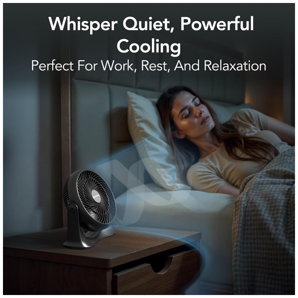 O Ventilador Circulador de Mesa Comfort Zone modelo CZ12202 oferece 3 velocidades ajustáveis por interruptor toggle para fluxo de ar personalizável, com inclinação vertical de 90° para direcionamento preciso. Equipado com 3 lâminas de plástico e diâmetro de 28 cm, proporciona circulação potente e eficiente em ambientes internos. Alimentado por rede elétrica com 110 V e potência de 50 W, possui montagem tabletop estável com construção em plástico resistente e acabamento matte.