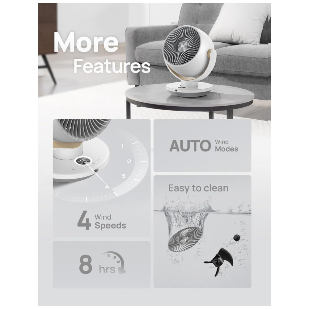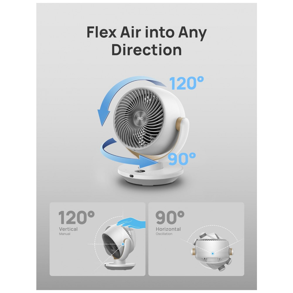 Ventilador Circulador de Mesa Dreo Branco Puro 28 cm 4 Velocidades Oscilação 90°/Inclinação 120° Alcance 18 m Silencioso 28 dB Timer 8h Modelo DR-HAF005 110V