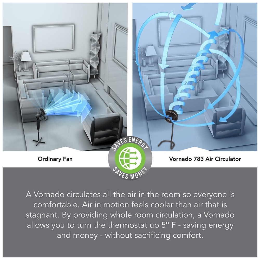 AÇÃO VORTEX PODEROSA: Utiliza a tecnologia exclusiva de circulação de ar em Vortex da Vornado para mover o ar de maneira eficaz por todo o cômodo. Não importa onde você esteja, você sentirá a potência do Vornado 783.