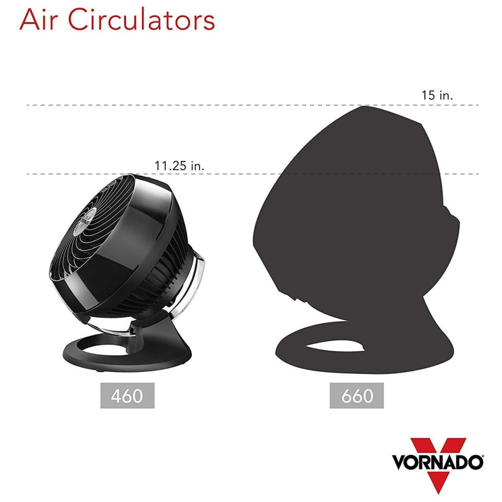 Apresentando o Vornado 460, um circulador de ar compacto que oferece potência e eficiência para toda a sala!