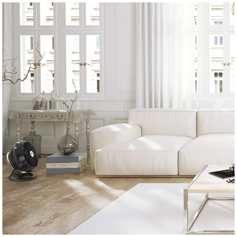 DESEMPENHO OTIMIZADO — O Vornado 660 pode ser utilizado tanto no chão quanto em uma mesa. Suas hélices profundas, em conjunto com o cone de entrada, duto de ar fechado e grade espiral, garantem um movimento de ar de até 30 metros.