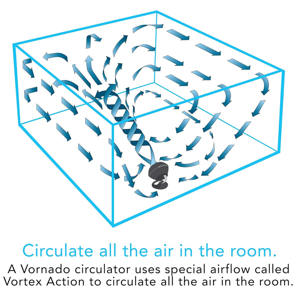 AÇÃO VORTEX PODEROSA — Utiliza a circulação de ar em Vortex, exclusiva da Vornado, para mover o ar de maneira eficaz por todo o cômodo. Não importa onde você esteja, você sentirá a potência do ventilador Vornado.