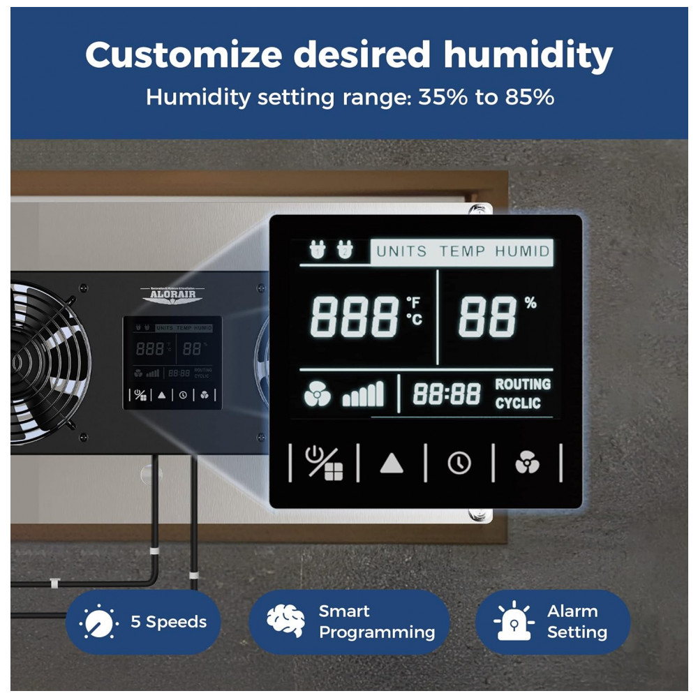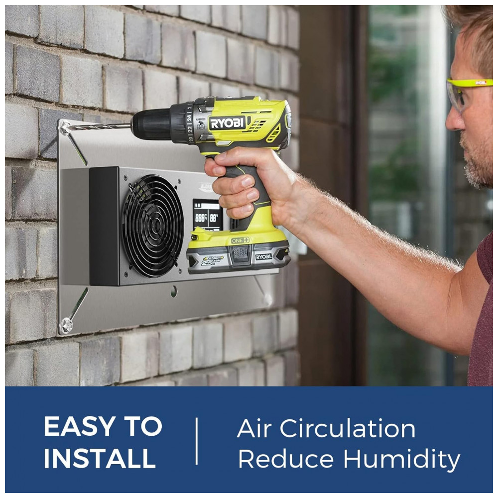 Construção Durável: Corpo em aço inoxidável com gaiola de metal para ambientes como porões, sótãos, garagens e tendas de cultivo. O sensor de temperatura e umidade deve ser instalado no mesmo espaço do equipamento, garantindo precisão e segurança.