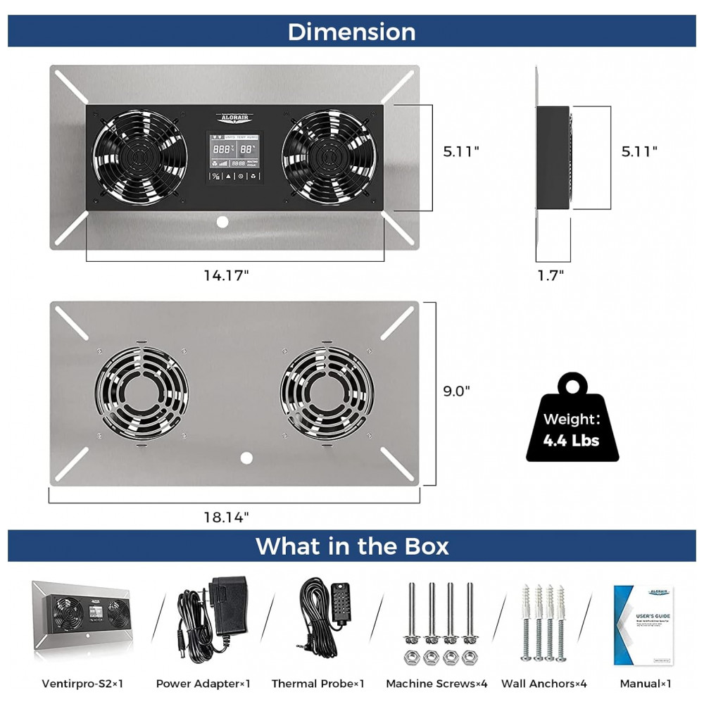 Componentes incluídos: Sistema de ventilador ×1, Adaptador de energia ×1, Sonda térmica ×1, Buchas de parede ×4