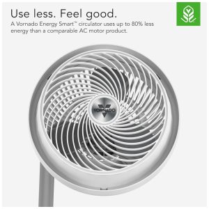 Apresentando o Vornado 783DC Energy Smart Full-Size Air Circulator Fan, o ventilador de pedestal projetado para oferecer uma ventilação potente e econômica em todo o ambiente. Com a tecnologia de circulação de ar Vortex, ele utiliza um motor DC sem escovas para mover o ar de forma eficiente, garantindo um conforto completo em qualquer espaço.