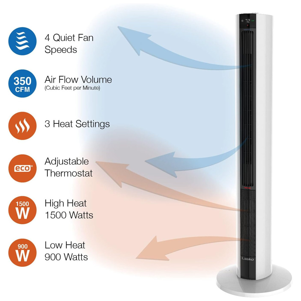 Ventilador de 3 Velocidades e Aquecedor de Torre de 4 Níveis 1500W 110V LASKO FH500 Branco