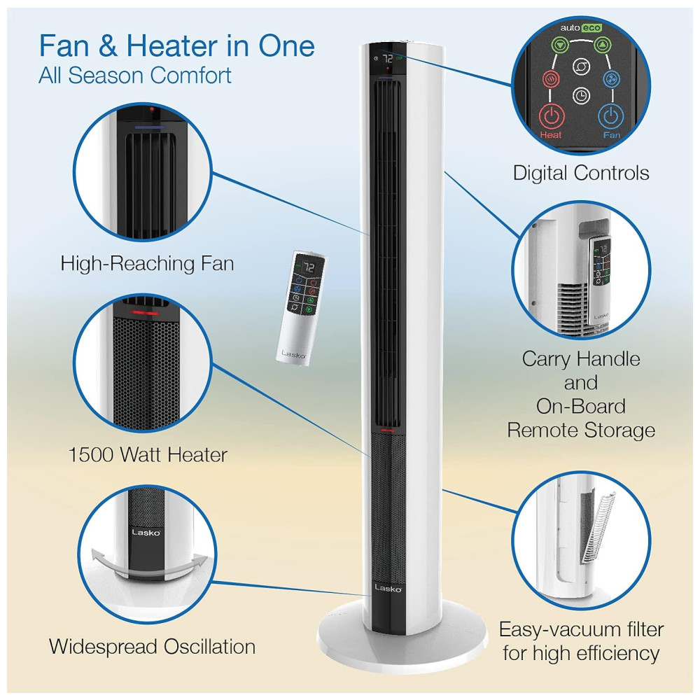 O ventilador e aquecedor de torre Lasko FH500 é uma solução versátil e potente para resfriamento e aquecimento em qualquer ambiente da sua casa ou escritório. Com design elegante e sem hélices, ele ocupa pouco espaço e oferece máxima distribuição de ar. Este aparelho combina ventilador e aquecedor com controles eletrônicos, proporcionando conforto durante o ano todo.