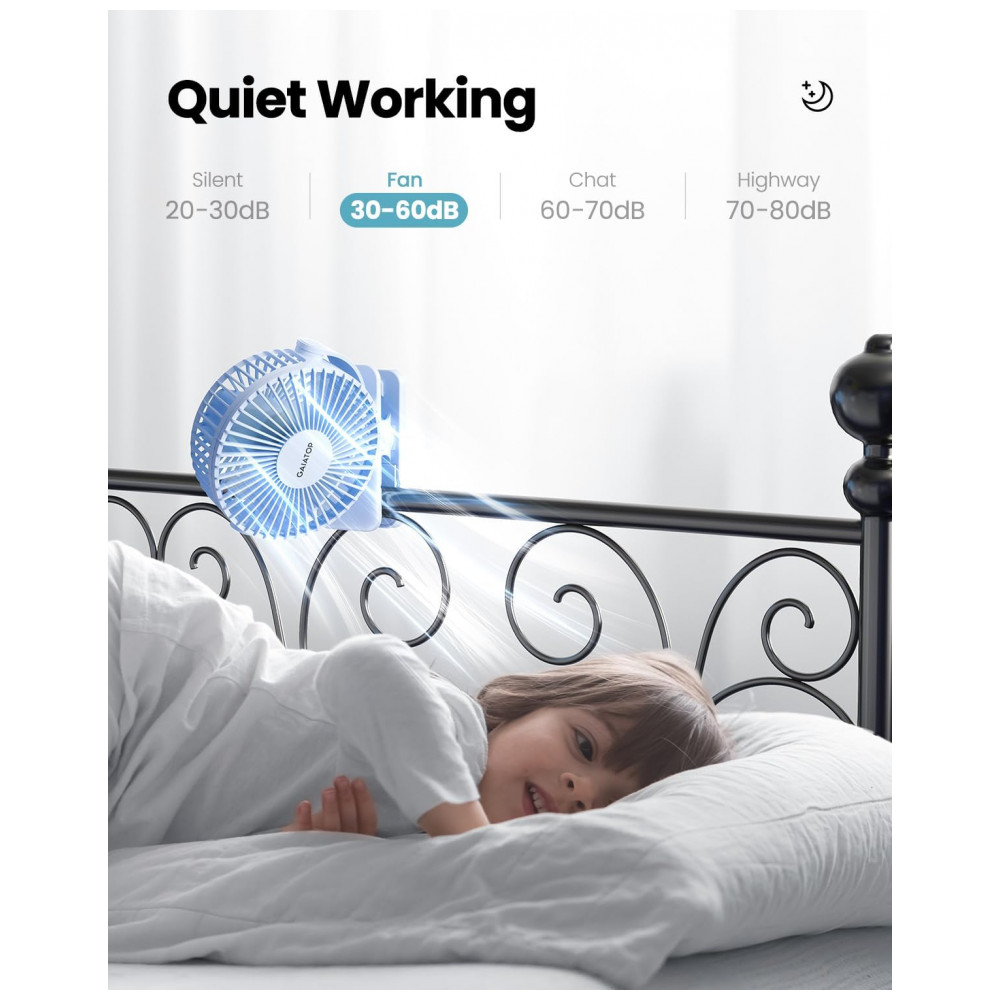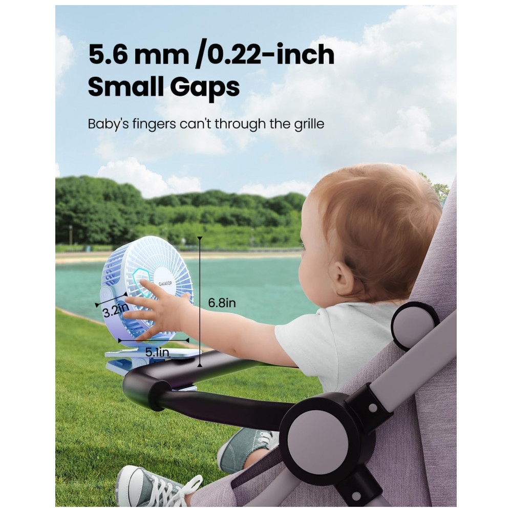 Ventilador de Clipes Portátil Gaiatop Azul Claro Recarregável USB 3 Velocidades Rotação 360° Bateria 35-10h Mini Poderoso Silencioso Modelo CF40 37V