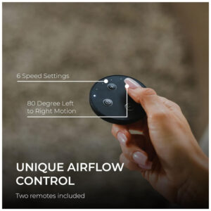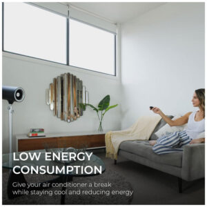 INNOVATIVE TECHNOLOGY Everdures tower fan is powered by a uniquely designed 150mm impeller providing a highly targeted airflow and constant air circulation through your home to keep you cool on hot days. Use it as an indoor fan or an outdoor fan. UNIQUE AIRFLOW CONTROL Stay cool with 6 speed settings and an 80 degree left to right oscillation you can control the power and direct the airflow where you need. Also, direct air distribution up or down with the 40 degree adjustable head tilt. QUIET OPERATION With 61.1 dBA on low setting this powerful yet silent fan brings a cool breeze as the body barrel forms an acoustic liner for quiet operation so you can sleep better. The slim design is ideal for places where space is minimal. LOW ENERGY CONSUMPTION The elegant standing fans boast a 30 watts high performance motor. Powerful airflow allows you to use this bladeless fan and give your air conditioner a break while staying cool and reducing your energy consumption and costs. EASY TO USE Two remotes are included so you can control the setting of your floor fan easily from your bedroom, living room, kitchen, home office or patio. When not in use store remote in a hidden fan compartment. DIMENSIONS 49.4H x 12.8W x 8.5L