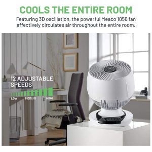 Equipado com um motor DC de baixo consumo energético, o MeacoFan 1056 opera com uma potência de apenas 9,5 a 23,5 watts, resultando em um custo de operação inferior a 1 centavo por hora, mesmo na velocidade máxima. Com a capacidade de fornecer até 100m2 de fluxo de ar por hora, este ventilador potente e eficiente é capaz de resfriar todo o ambiente com sua oscilação multidirecional.