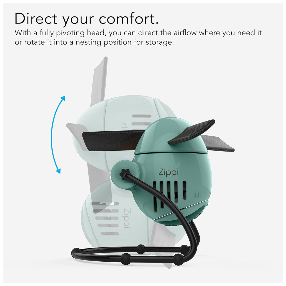 DESIGN INOVADOR: O ventilador portátil Zippi é um item essencial para seu escritório. Disponível em uma variedade de cores com acabamento de alto brilho e design dobrável, ele é fácil de transportar e guardar.