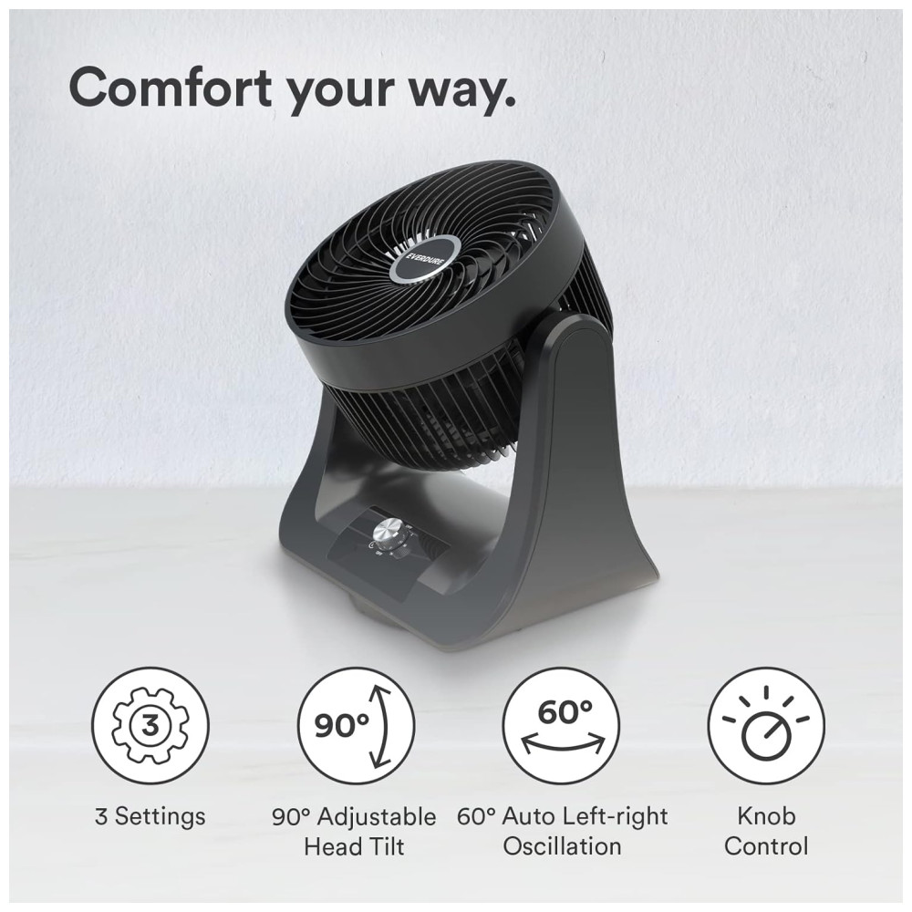 Design Compacto – O design clássico e compacto do Ventilador de Mesa Everdure torna-o uma adição prática e fácil para qualquer espaço. Seja na mesa de cabeceira, na escrivaninha, no balcão ou em uma prateleira, este ventilador potente, mas silencioso, oferece uma brisa agradável para tornar o ambiente mais confortável. DIMENSÕES: 29,5 cm (L) x 19,8 cm (P) x 32,7 cm (A).