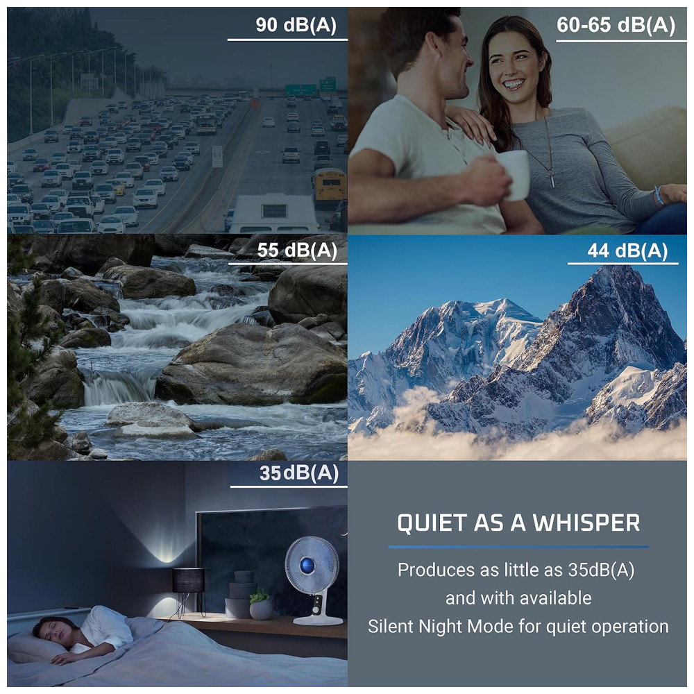 Desempenho potente: com uma capacidade de refrescamento de até 448 m³/min na velocidade máxima, este ventilador oferece um conforto excepcional em silêncio, mantendo você fresco e à vontade o dia todo.