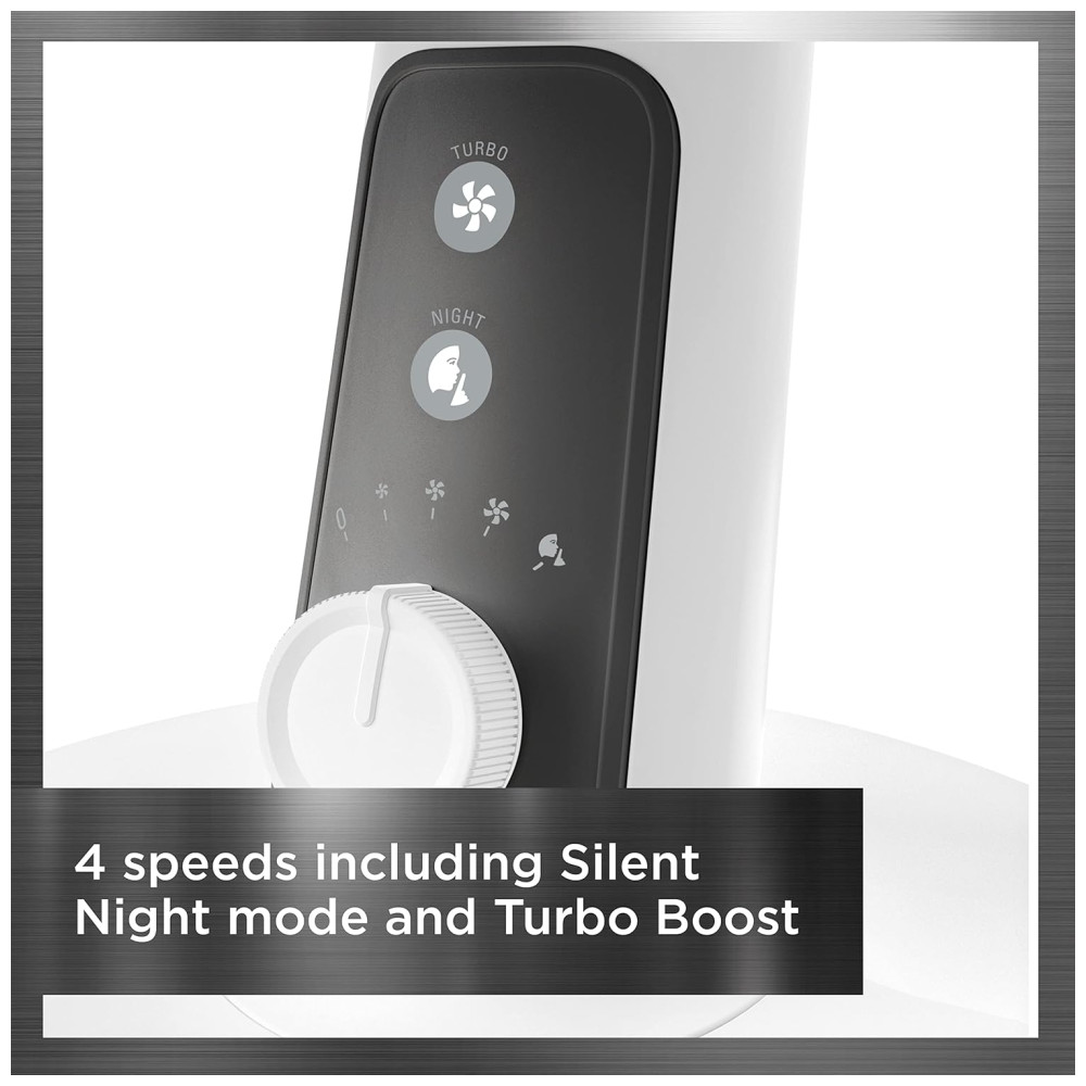 O ventilador perfeito para o quarto: a oscilação automática de 120° e a orientação ajustável garantem uma ampla difusão de ar por todo o ambiente, proporcionando frescor onde você mais precisa.