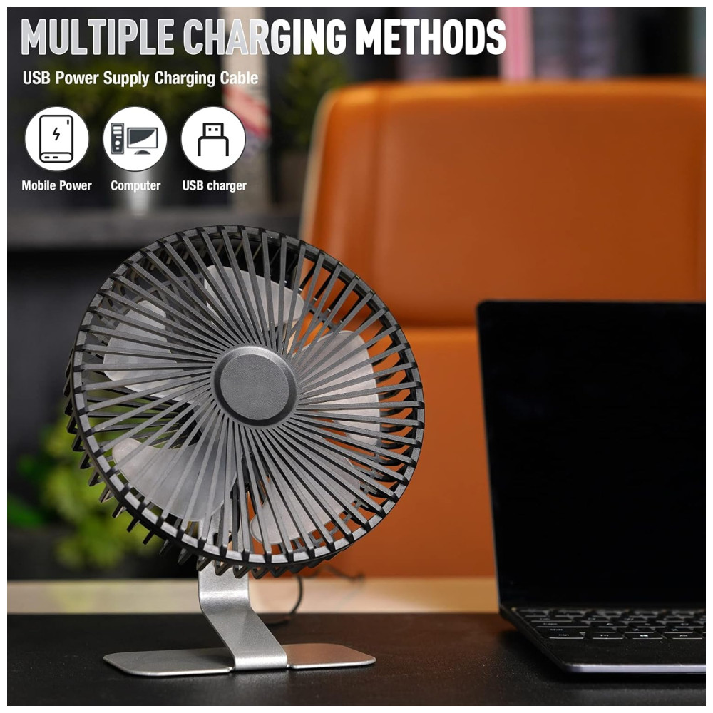 Ventilador de Mesa de Portátil com 4 Velocidades 5V SLENPET F1504 Cinza