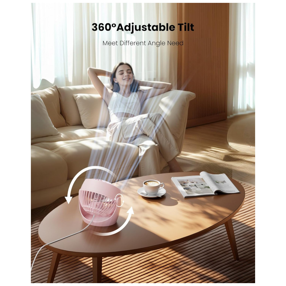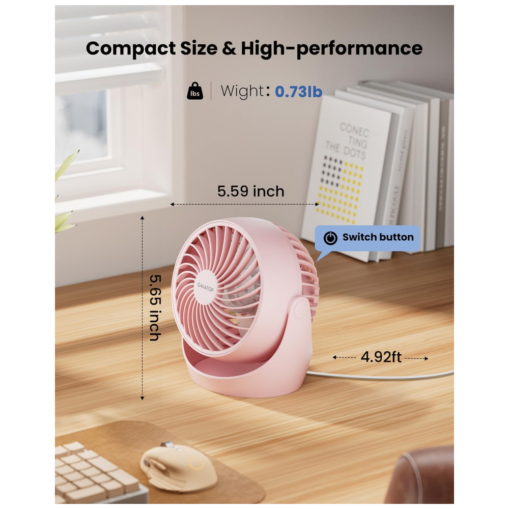 Ventilador de Mesa Gaiatop Rosa 11 cm 3 Velocidades 1100 RPM Inclinação 360° Silencioso 30 dB Vento 62 m/s Potência 68W Modelo AF-01 110V