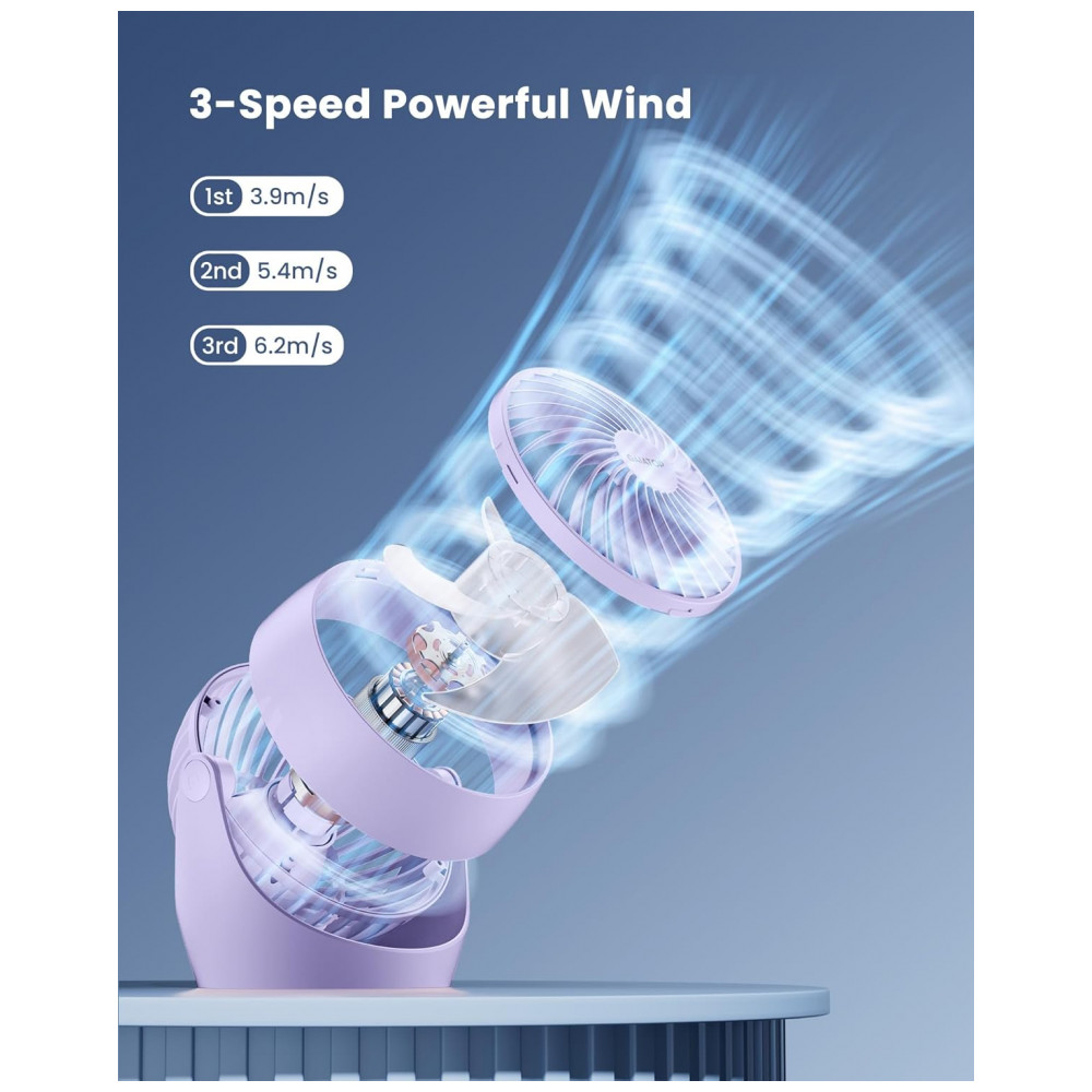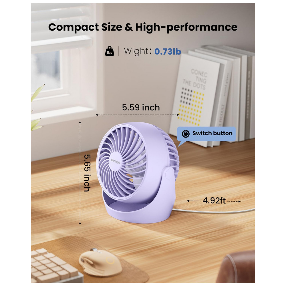 Ventilador de Mesa Gaiatop Roxo 11 cm 3 Velocidades Inclinação 360° Silencioso 30 dB Vento 62 m/s Potência 68W Modelo AF-01 110V
