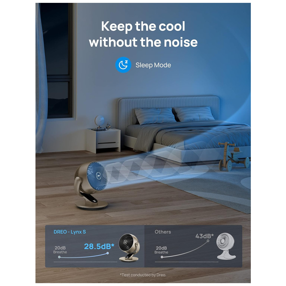 Silencioso e Confortável: Com um design aerodinâmico e lâminas biónicas, o ventilador reduz o ruído para apenas 28,5 dB, proporcionando um ambiente tranquilo e confortável para você e sua família.