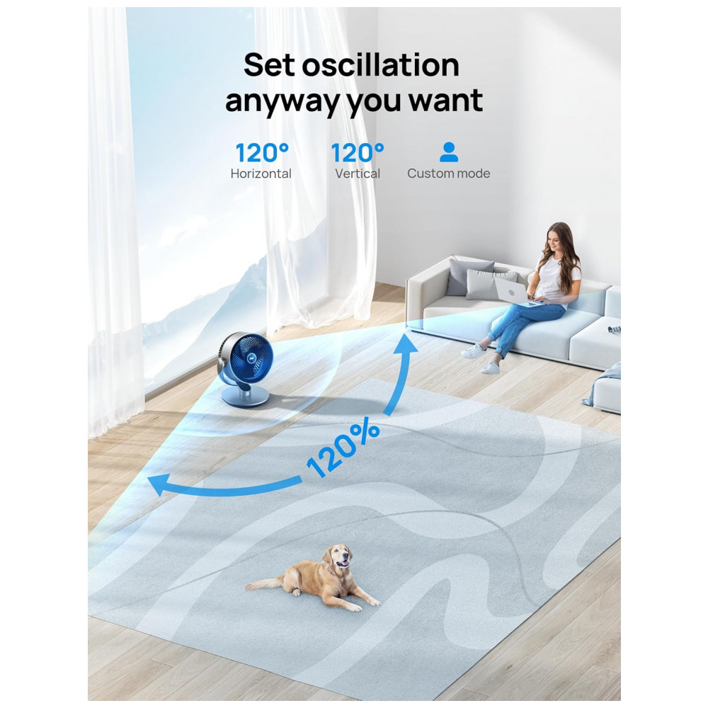Frescor em todos os cantos: Sinta o ar ao seu redor com este ventilador oscilante. Com oscilação multidirecional de 120° na vertical e 120° na horizontal, você direciona o ar para onde desejar. O aplicativo Dreo permite ajustar o ângulo conforme sua preferência, tornando-o perfeito para qualquer situação.