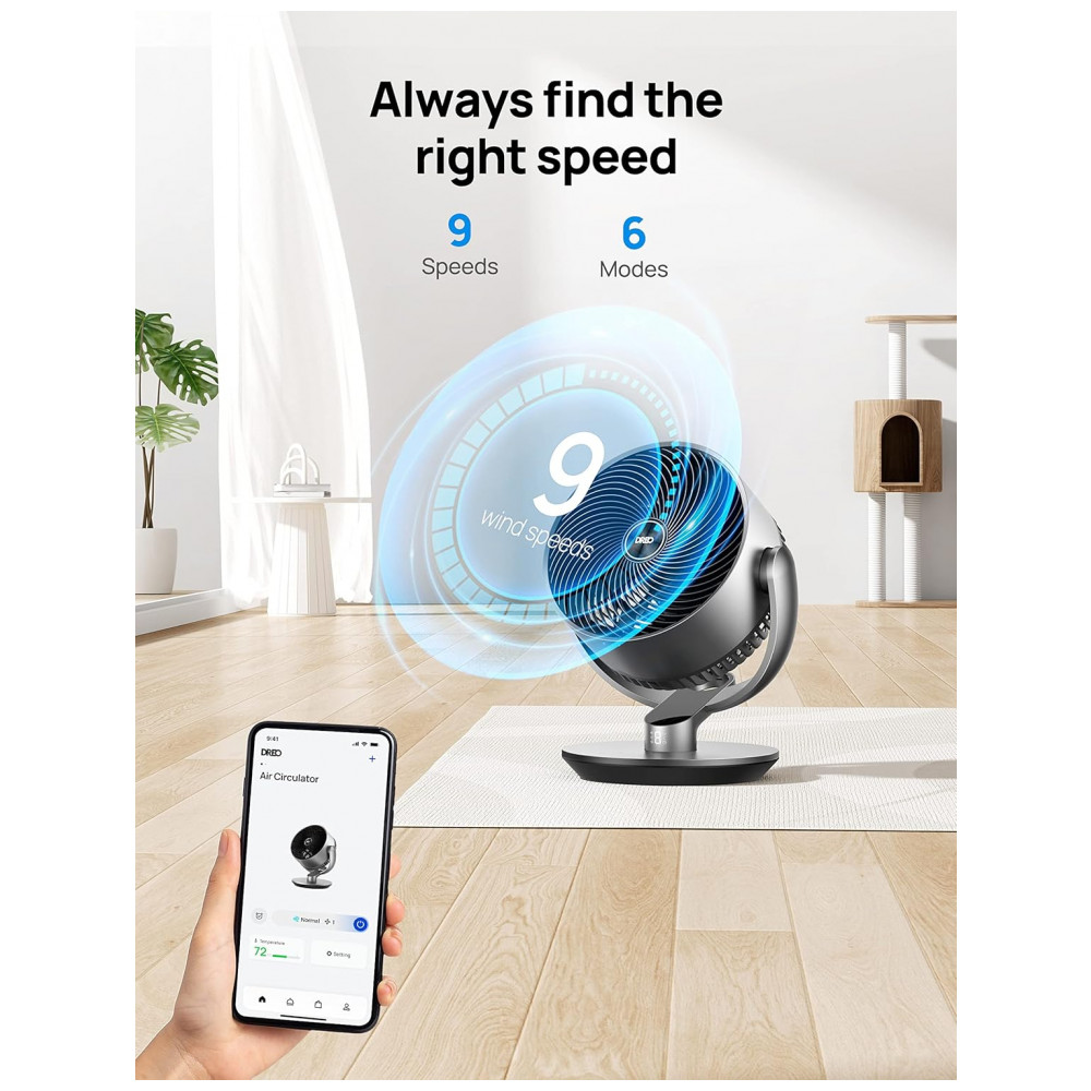 Ventilador de Mesa Inteligente com 9 Velocidades 6 Modos Temporizador 110V 48W Dreo Cinza Prata