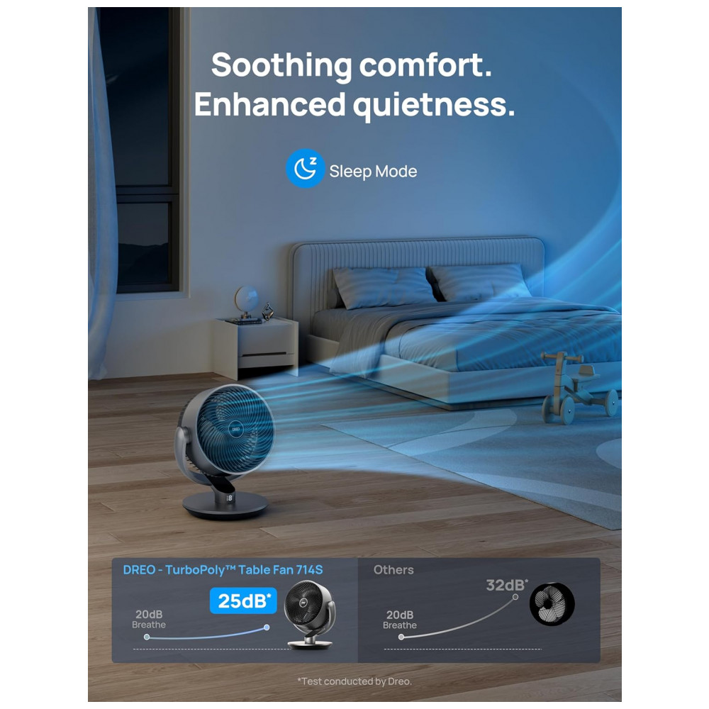 Circulação de ar de longo alcance: Equipado com a tecnologia Dreo Turbosilent X, este ventilador cria um fluxo de ar impressionante de 1838 m³/h, alcançando até 33,5 m de distância. Ideal para resfriar quartos, salas e escritórios inteiros.