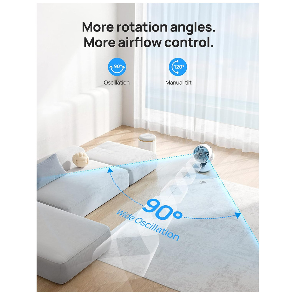Mantenha-se fresco em qualquer lugar: com inclinação de 120° e oscilação de 90°, encontre o ângulo perfeito e envolva-se em frescor; combine-o com seu ar-condicionado para economizar energia.