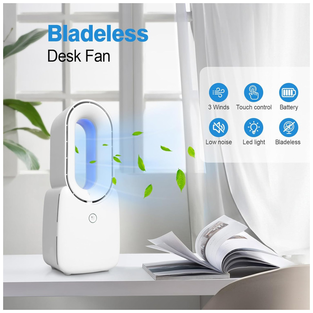 Ventilador de Mesa Portátil Recarregável sem Lâminas 110V CONBOLA Branco