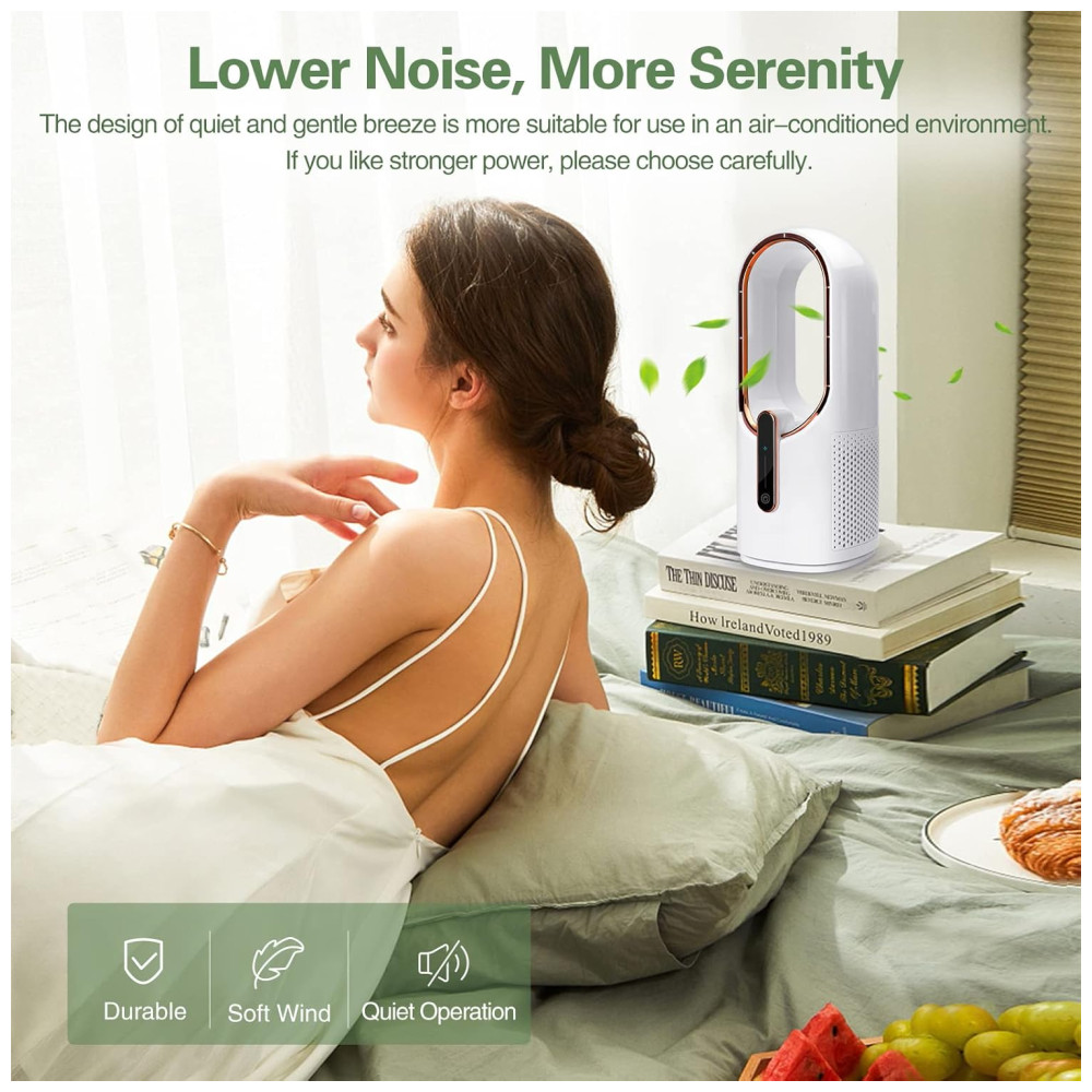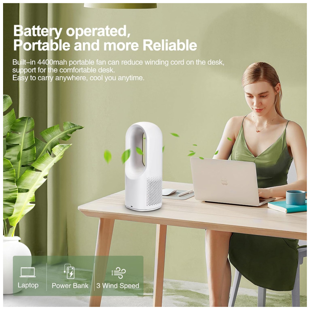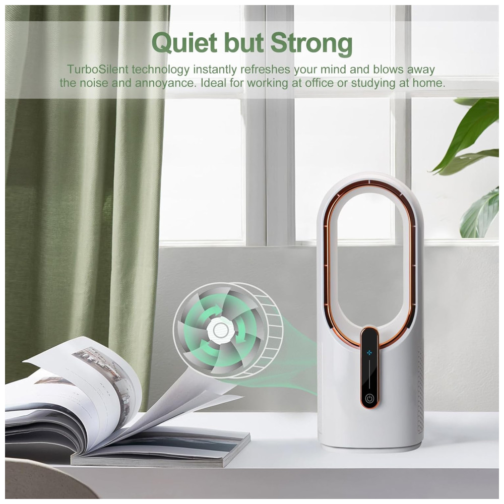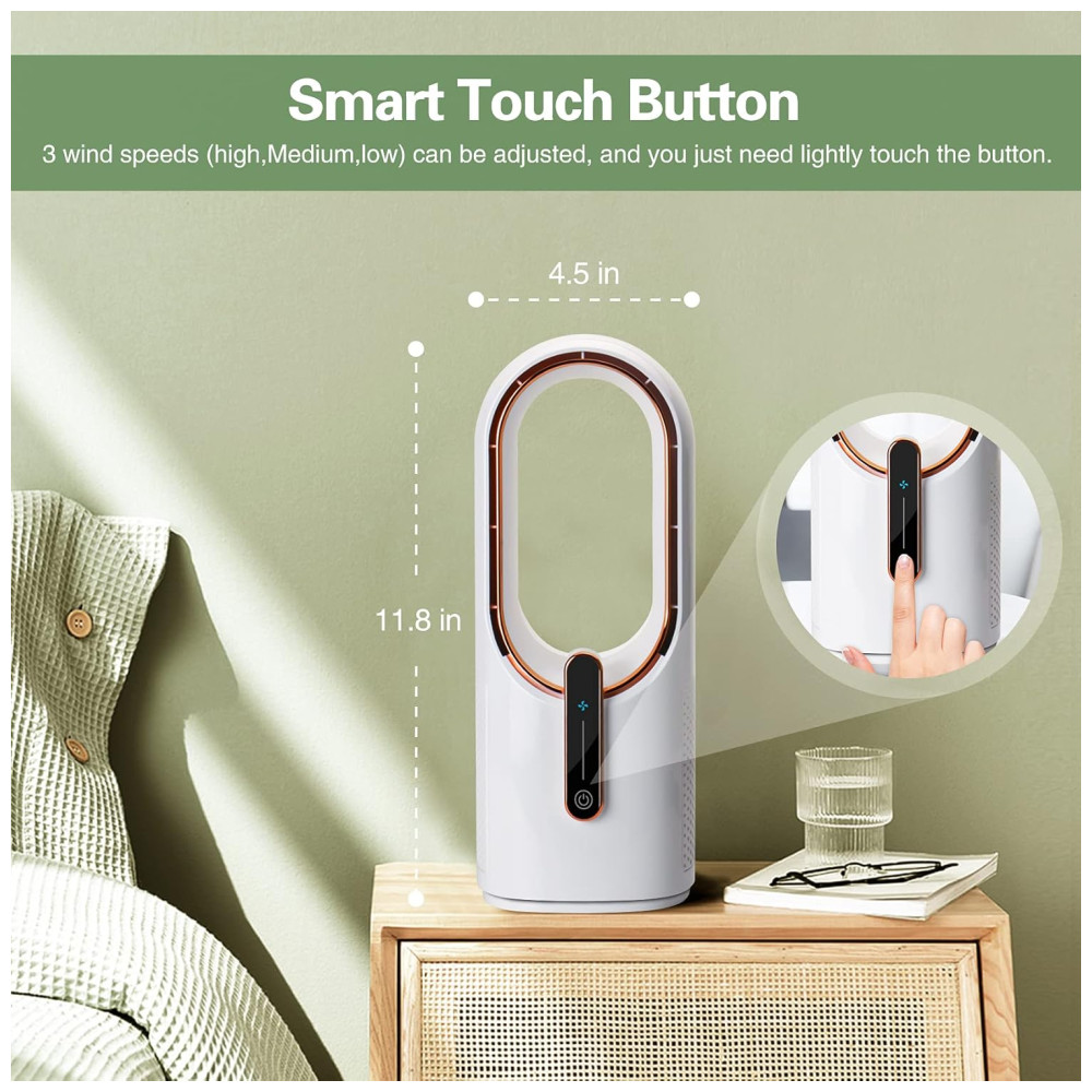 Recursos adicionais: Ventilador operado por bateria, sem lâminas, ventilador de mesa, portátil, controle por toque