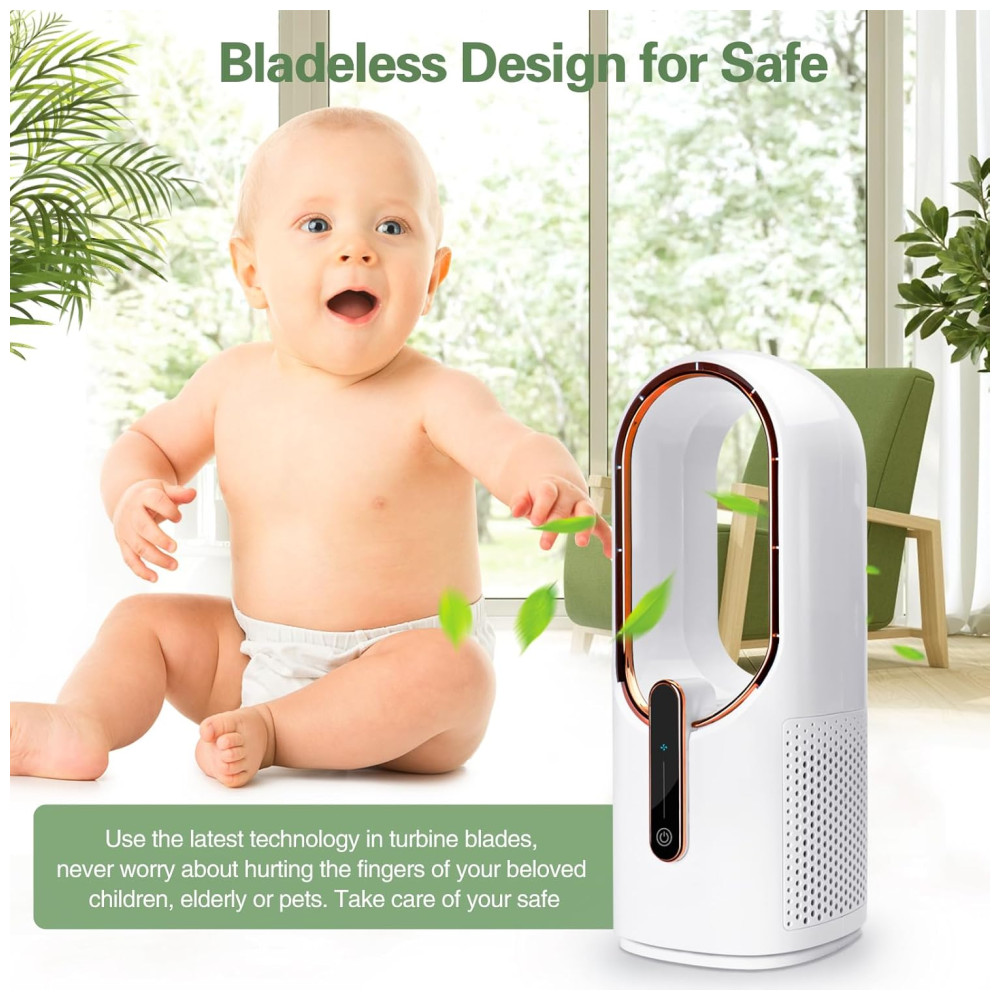 Descubra o Ventilador de Mesa CONBOLA! Com tecnologia inovadora de turbina, este ventilador sem lâminas proporciona um fluxo de ar potente, ideal para resfriar ambientes abafados. O design sem lâminas garante segurança para bebês e animais de estimação, enquanto as borrachas na base aumentam a estabilidade e reduzem a vibração, mesmo em alta velocidade.