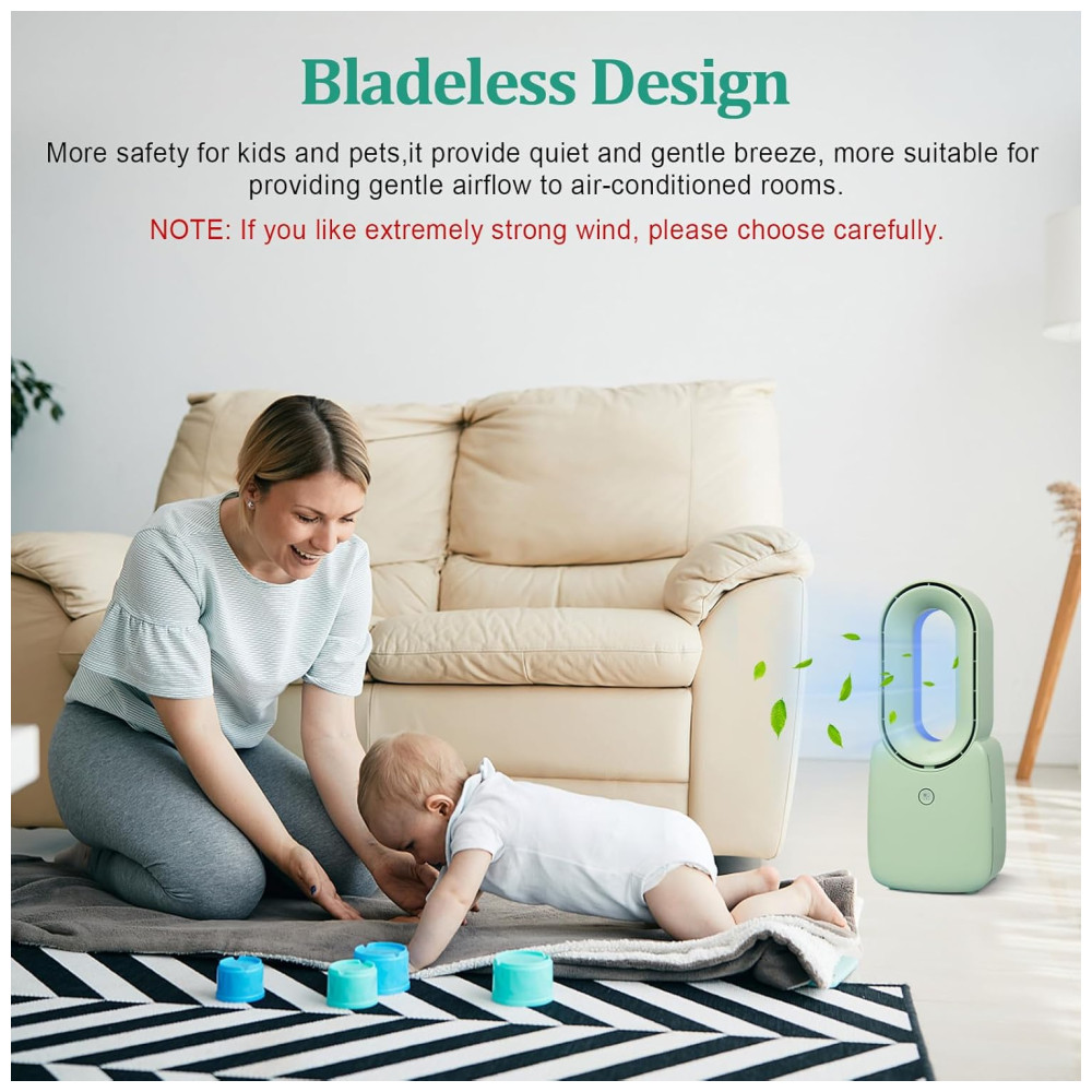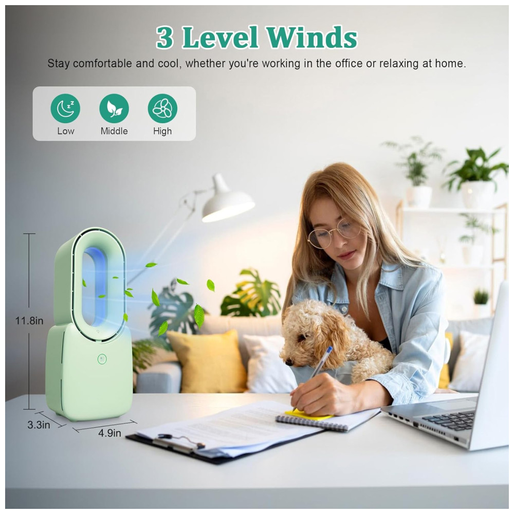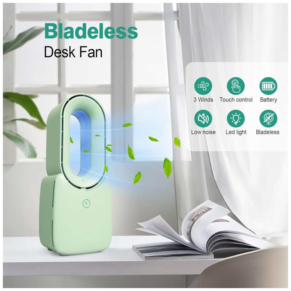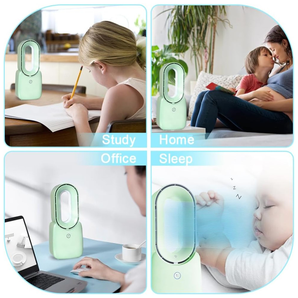 Ventilador de Mesa sem Lâmina Portátil e Recarregável 5V 5W CONBOLA Verde