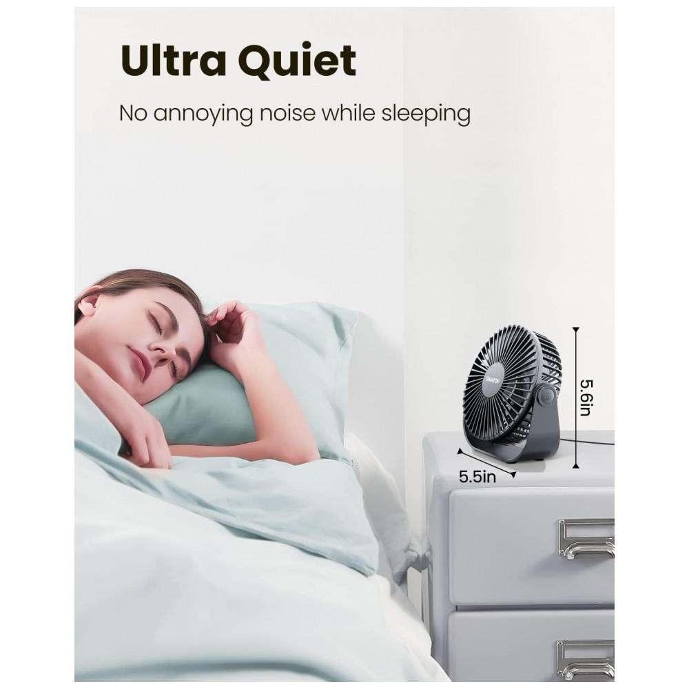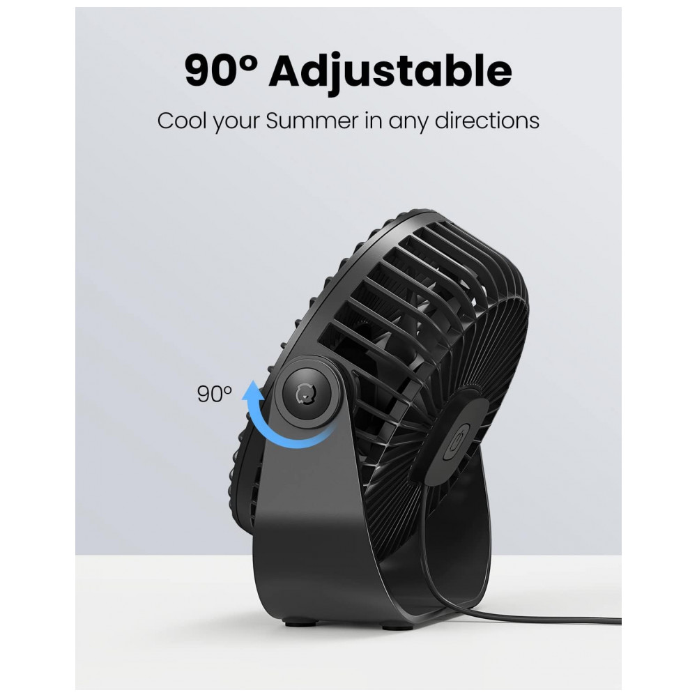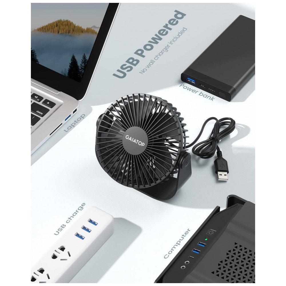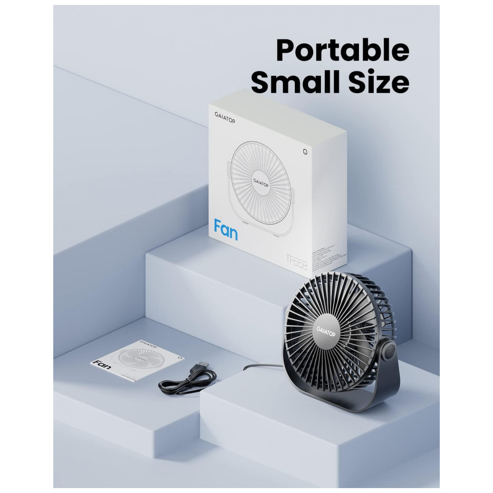 Ventilador de Mesa USB Gaiatop Preto 14 cm 3 Velocidades até 48 m/s 2500 RPM Rotação 90° Silencioso 40 dB 5 Lâminas Modelo TF55B 5V