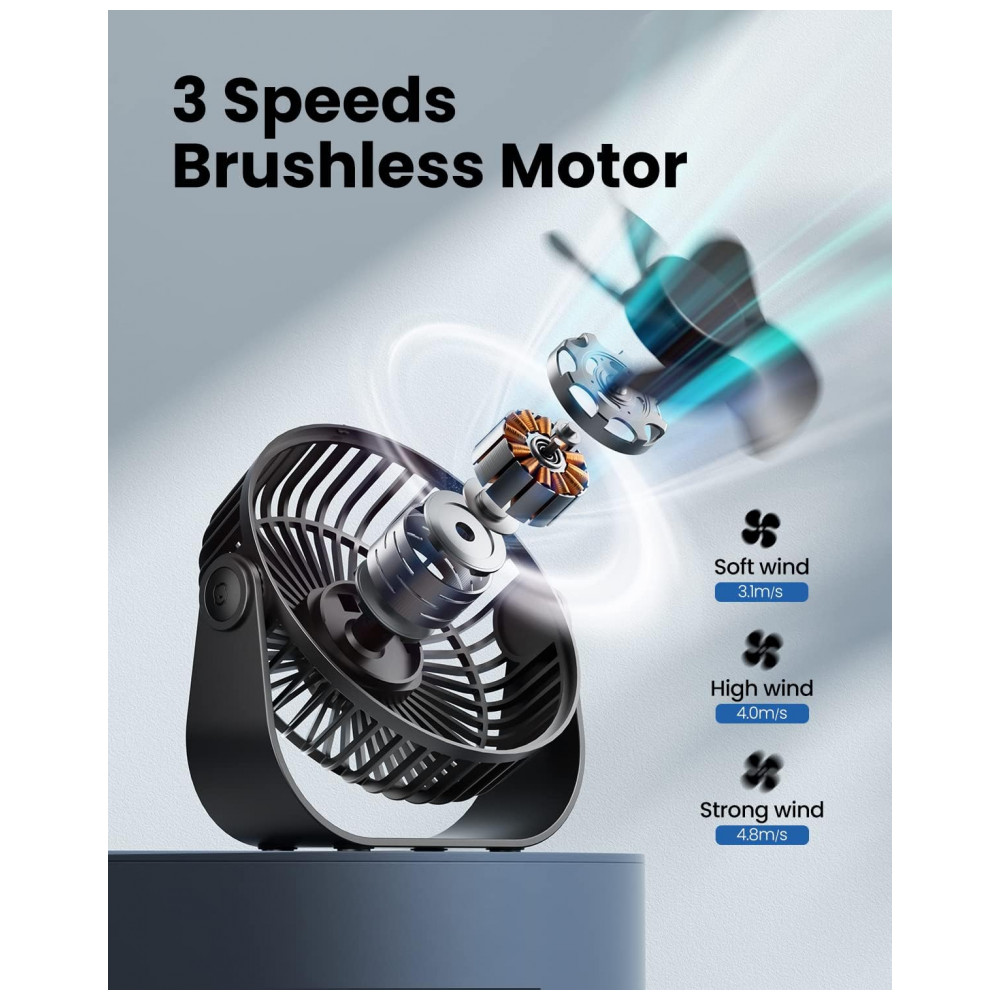 O Ventilador de Mesa USB Gaiatop modelo TF55B oferece 3 velocidades ajustáveis: velocidade 1 (suave, 3,1 m/s, 1500 RPM), velocidade 2 (alta, 4,0 m/s, 2000 RPM) e velocidade 3 (forte, 4,8 m/s, 2500 RPM), acionadas por botões touch. Equipado com motor aprimorado e 5 lâminas de plástico, proporciona fluxo de ar potente com ruído de 40 dB para operação silenciosa. Alimentado via USB com 5 V e 5 W, compatível com PC, laptop, power bank, adaptador AC ou carregador automotivo, inclui cabo de 1,5 m.