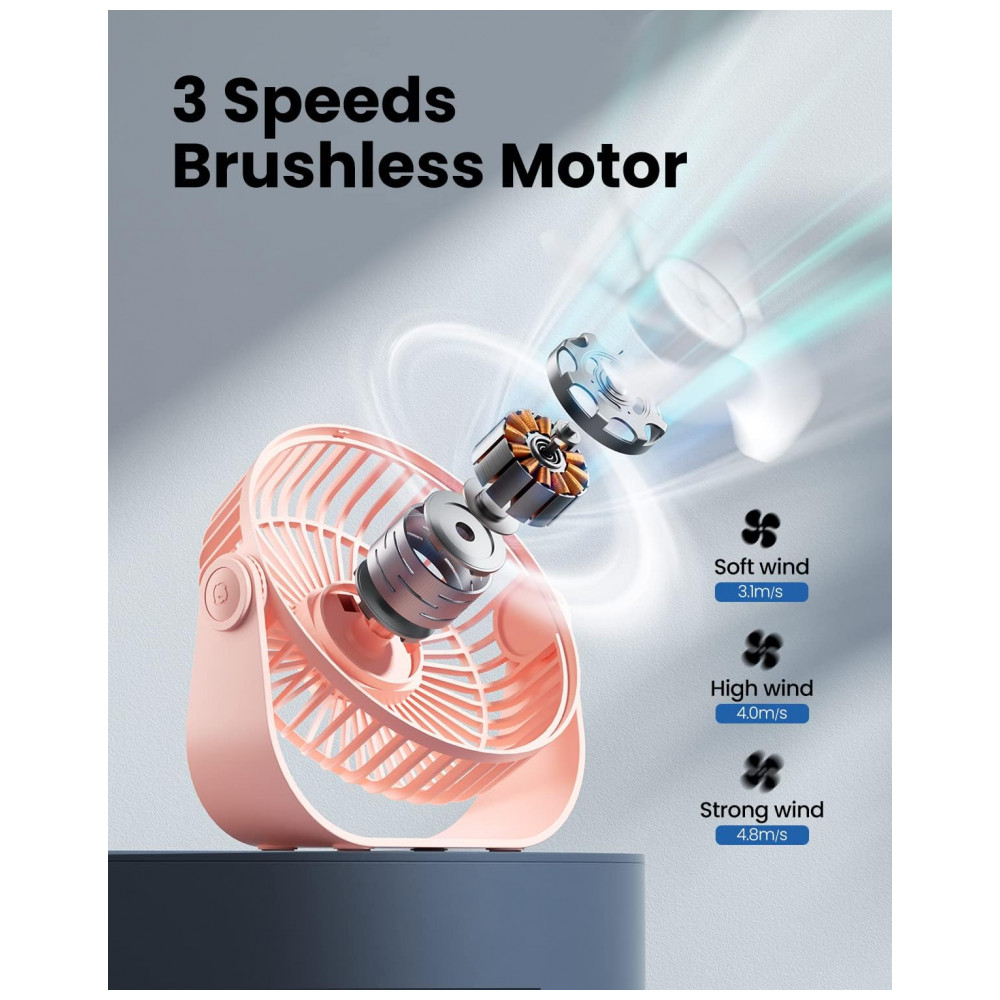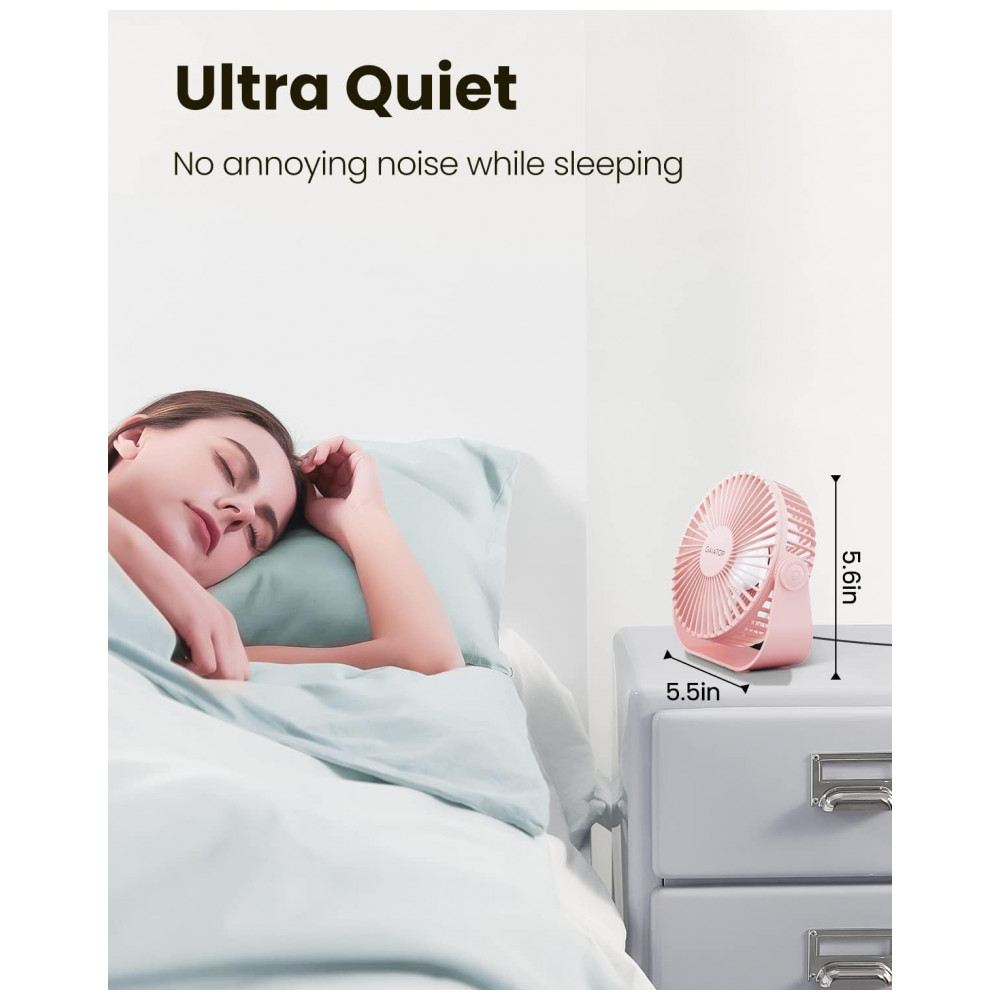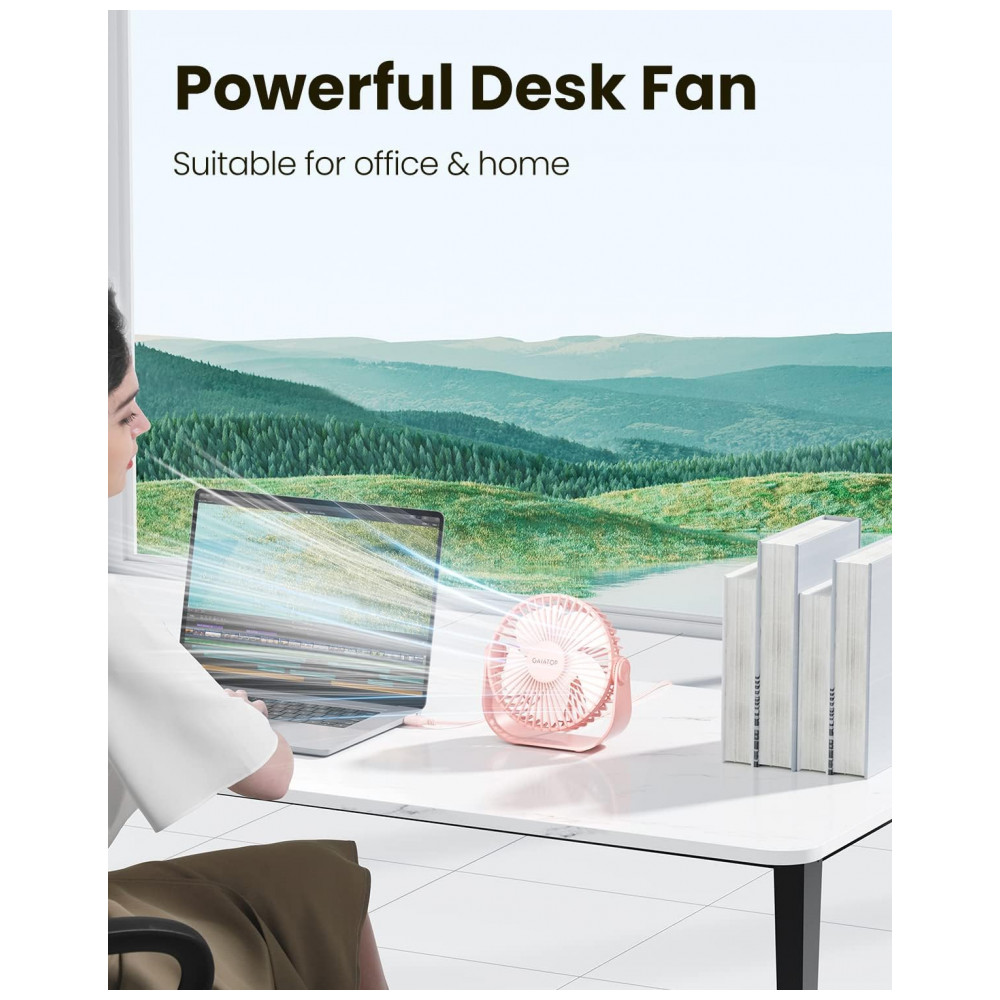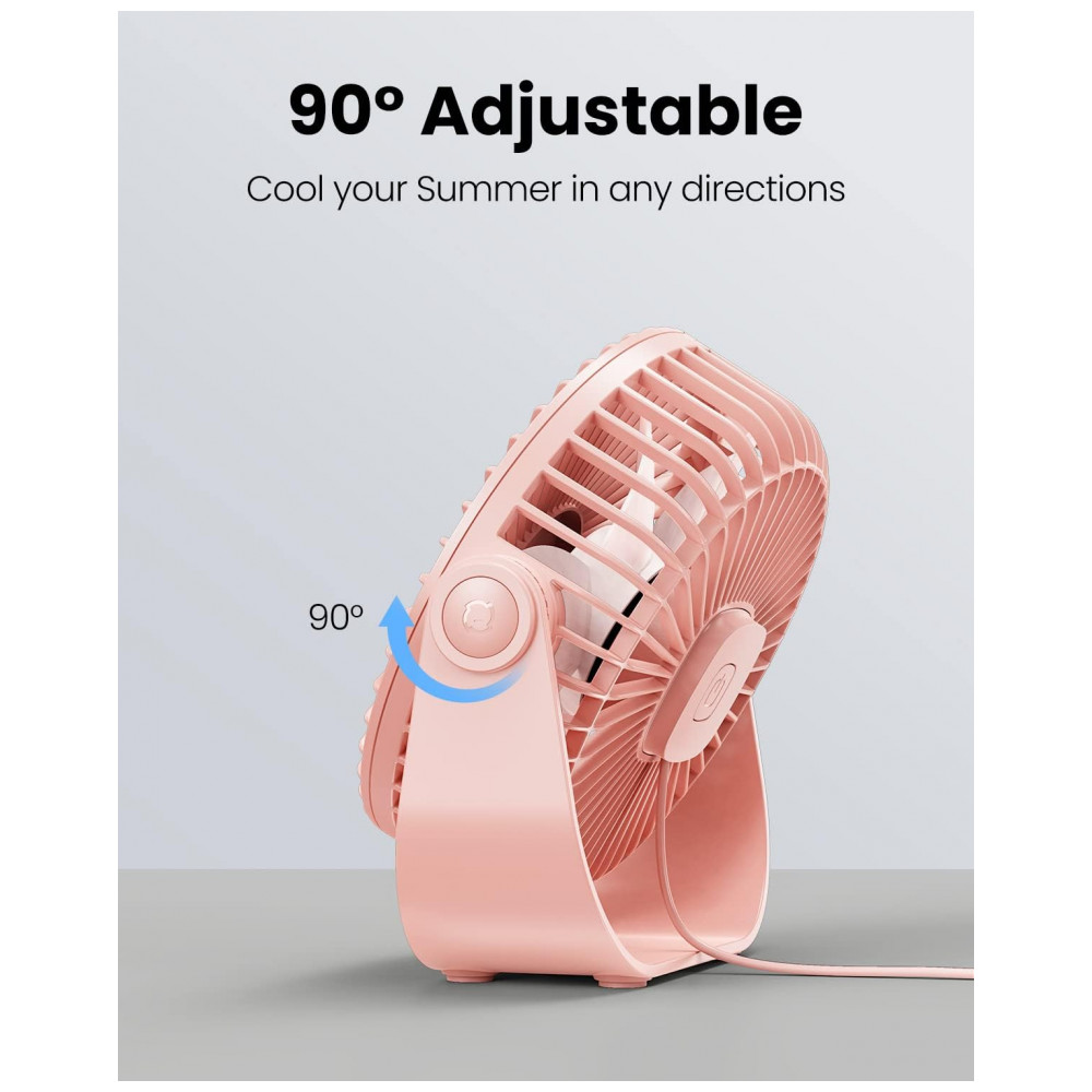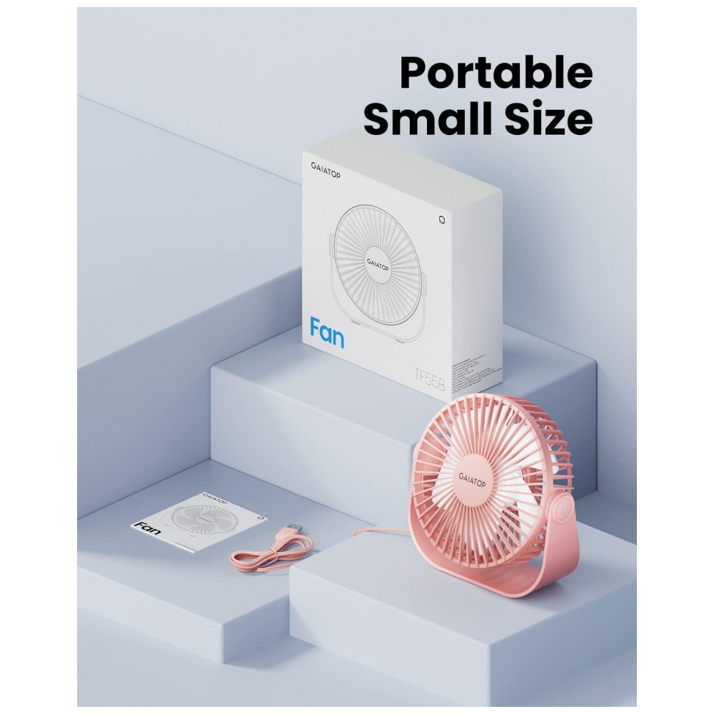 Ventilador de Mesa USB Gaiatop Rosa 14 cm 3 Velocidades até 48 m/s 2500 RPM Rotação 90° Silencioso 40 dB 5 Lâminas Modelo TF55B 5V (DC)